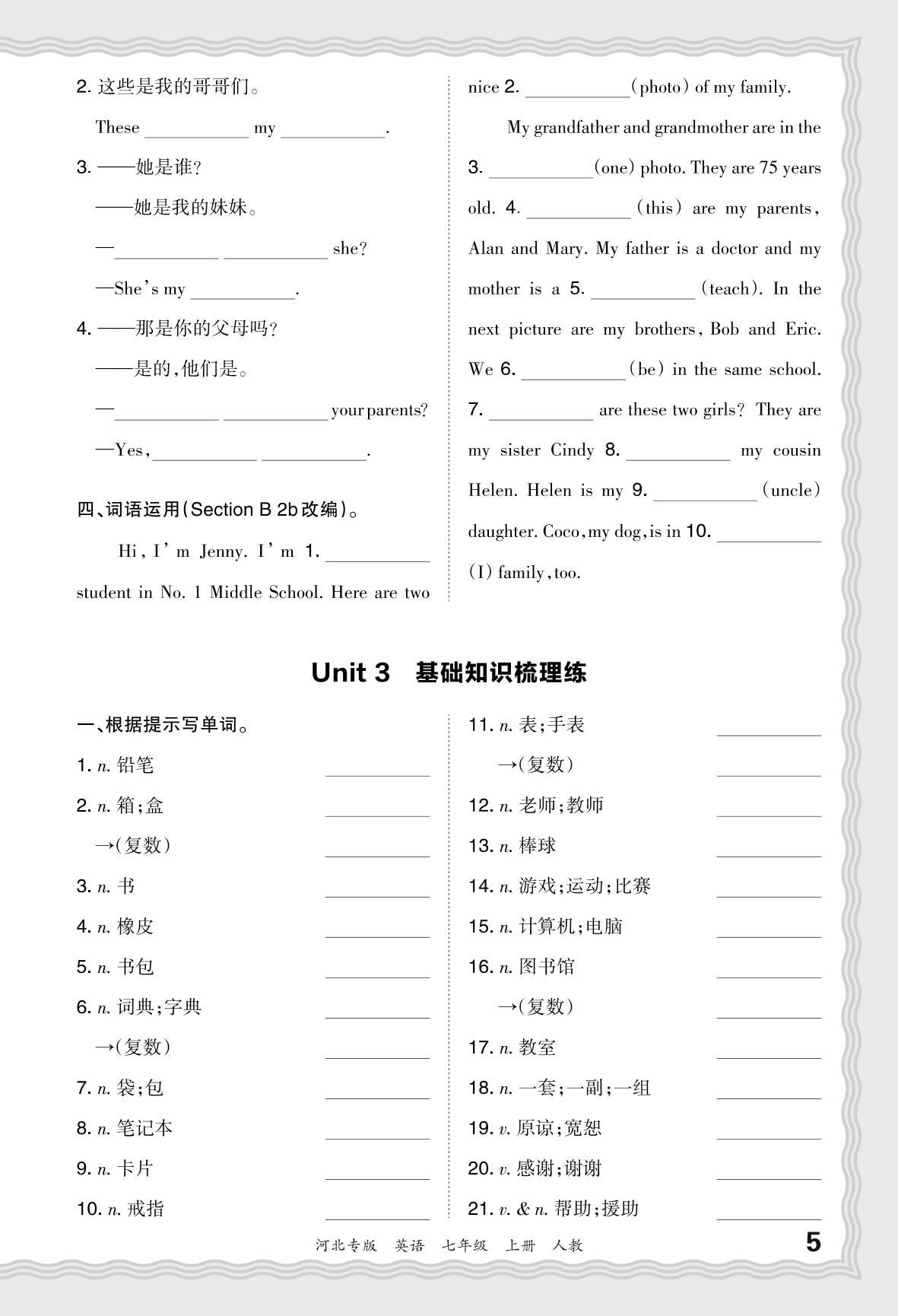 2023秋上册七年级英语人教版 期末过课本·Unit 3 基础知识梳理练_R231124155122783