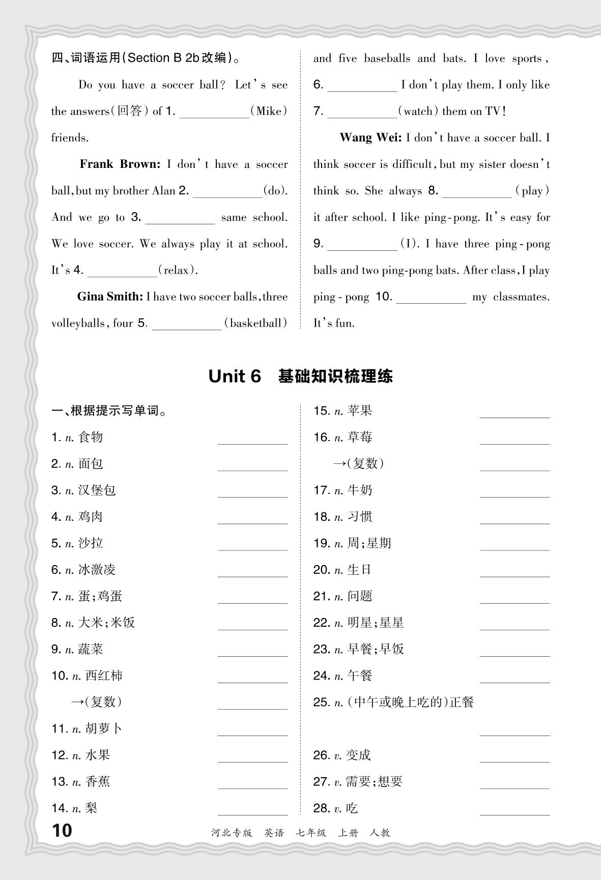 2023秋上册七年级英语人教版 期末过课本·Unit 6 基础知识梳理练_R231124155123175