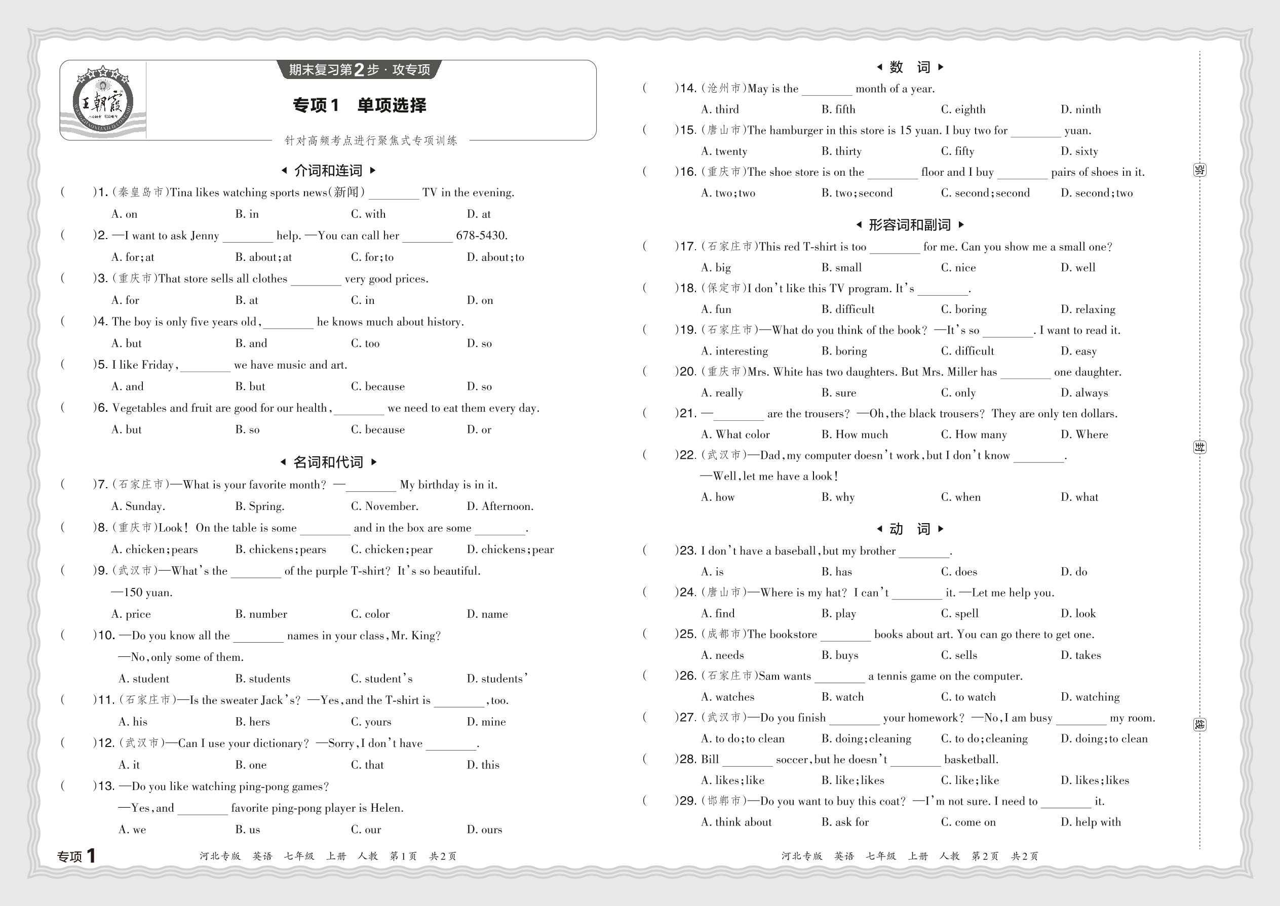 2023秋上册七年级英语人教版 期末专项卷·单项选择【1】