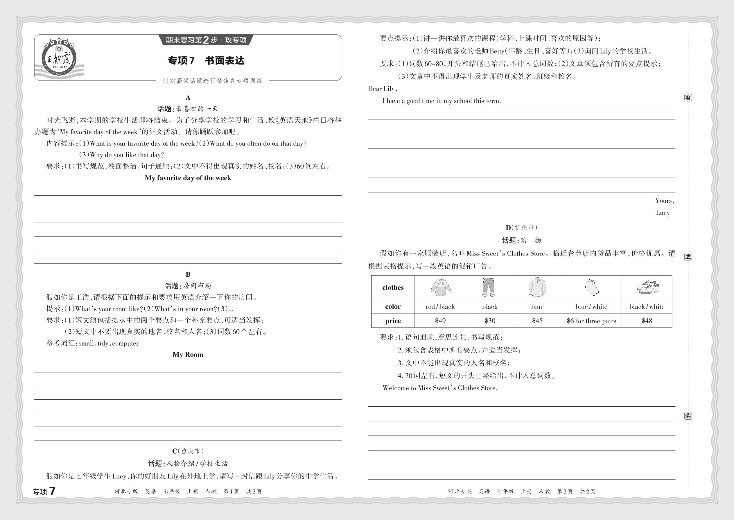 2023秋上册七年级英语人教版 期末专项卷·书面表达【7】