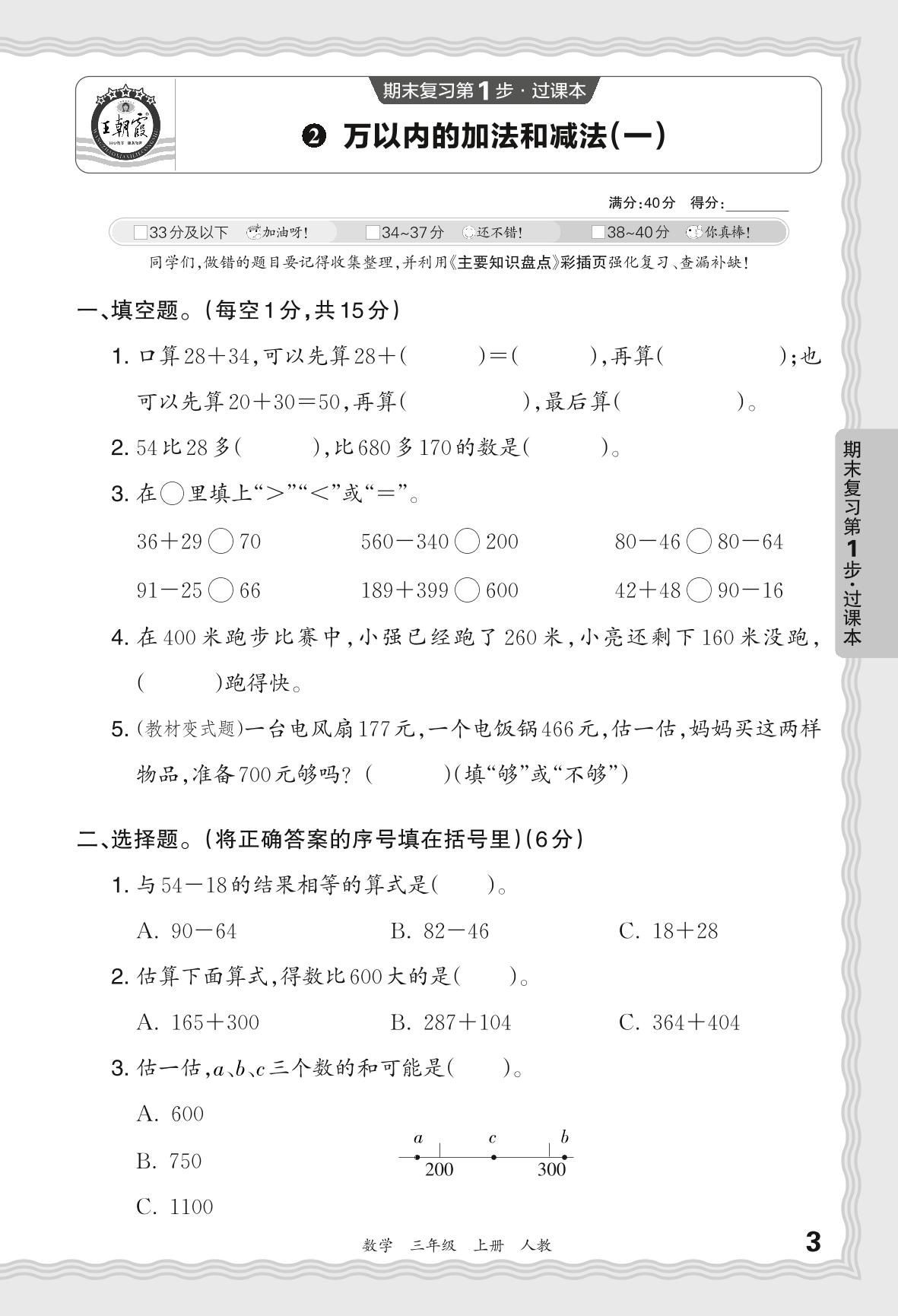2023秋上册三年级数学人教版 期末过课本QMC版·万以内的加法和减法(一)【2】