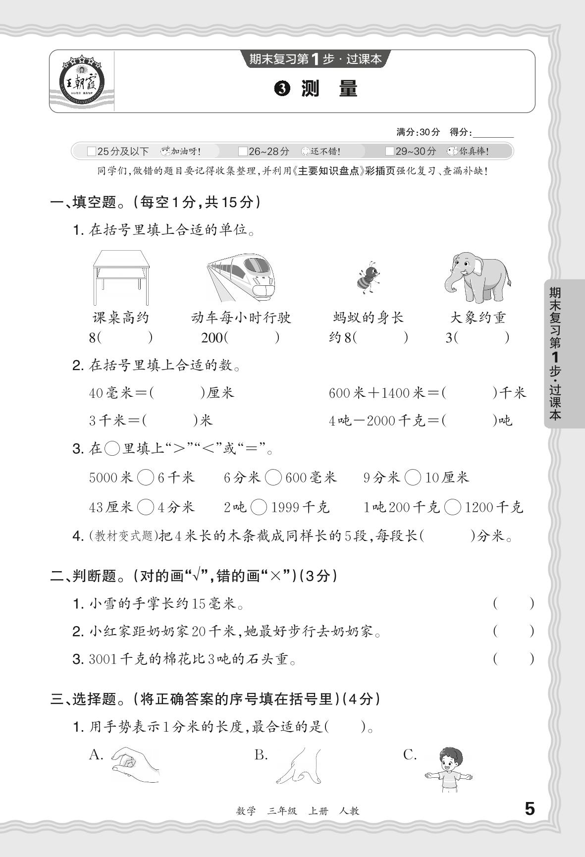 2023秋上册三年级数学人教版 期末过课本QMC版·测量【3】