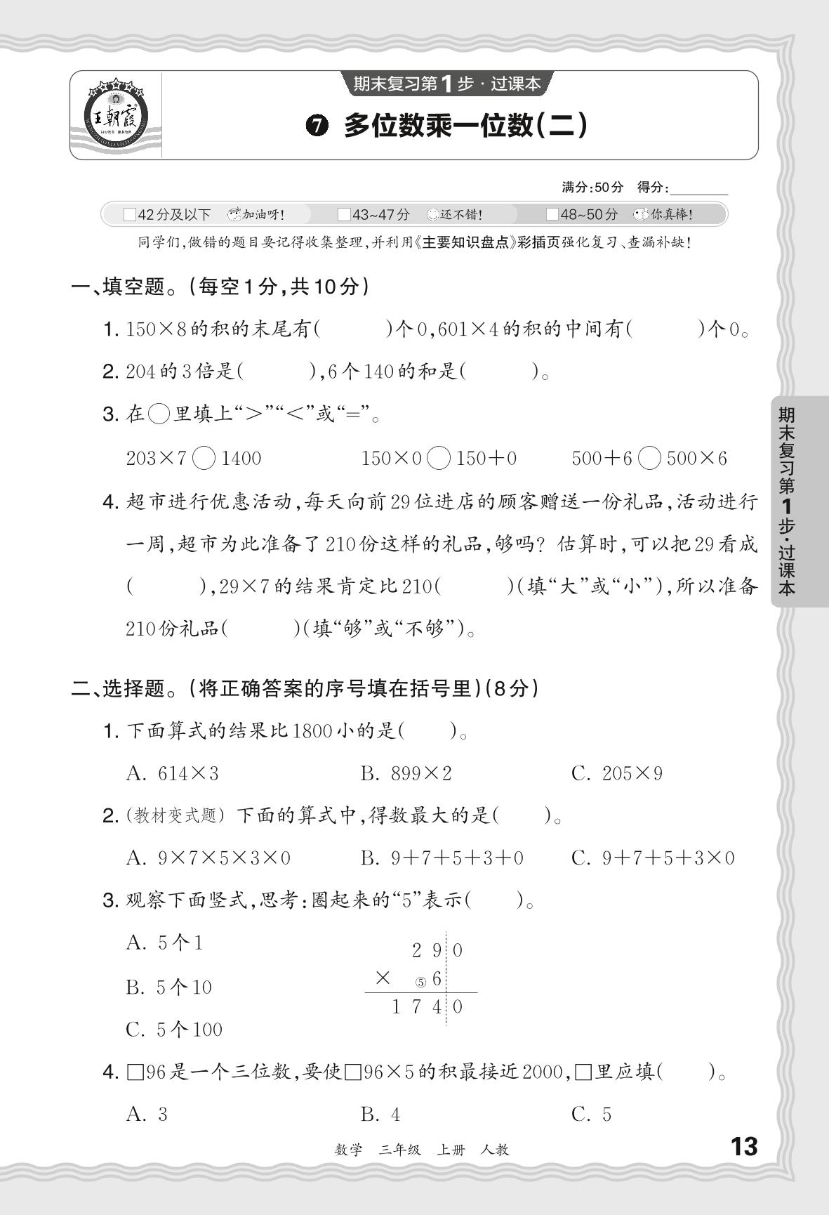 2023秋上册三年级数学人教版 期末过课本QMC版·多位数乘一位数(二)【7】