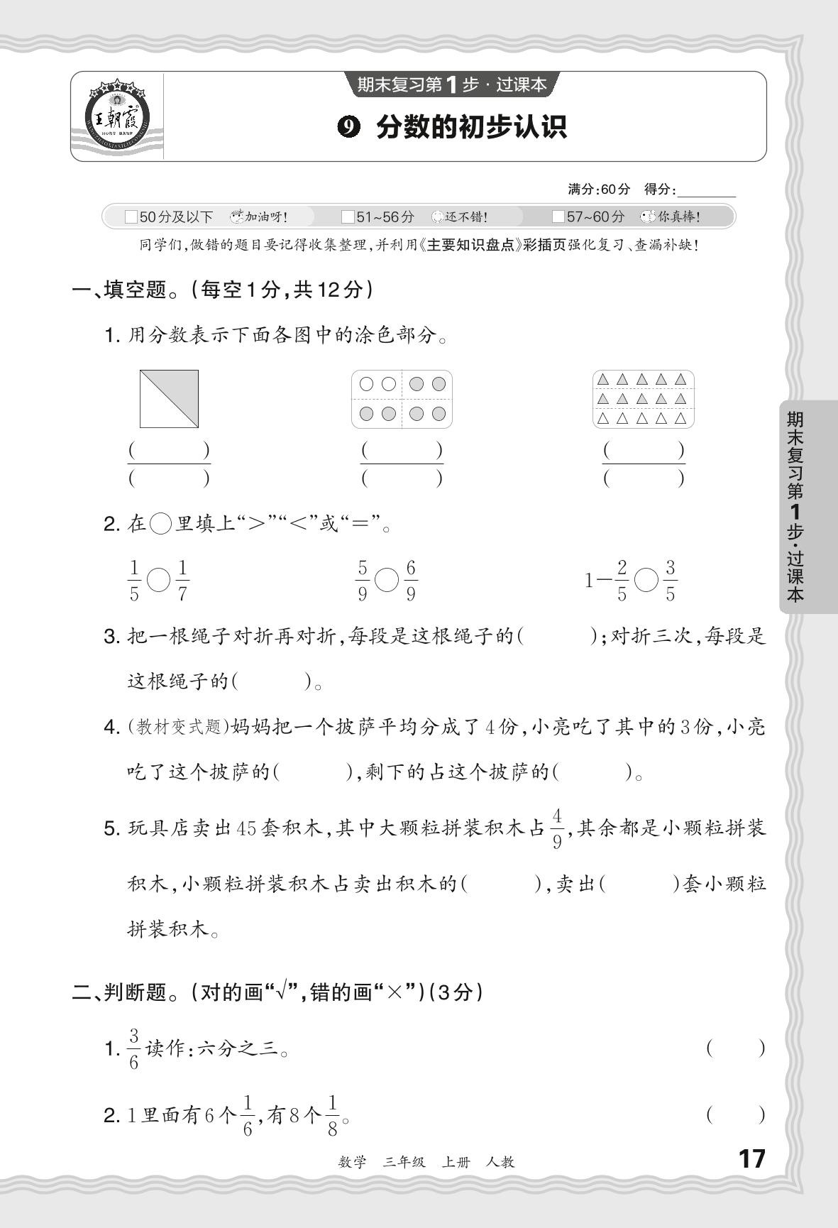 2023秋上册三年级数学人教版 期末过课本QMC版·分数的初步认识【9】