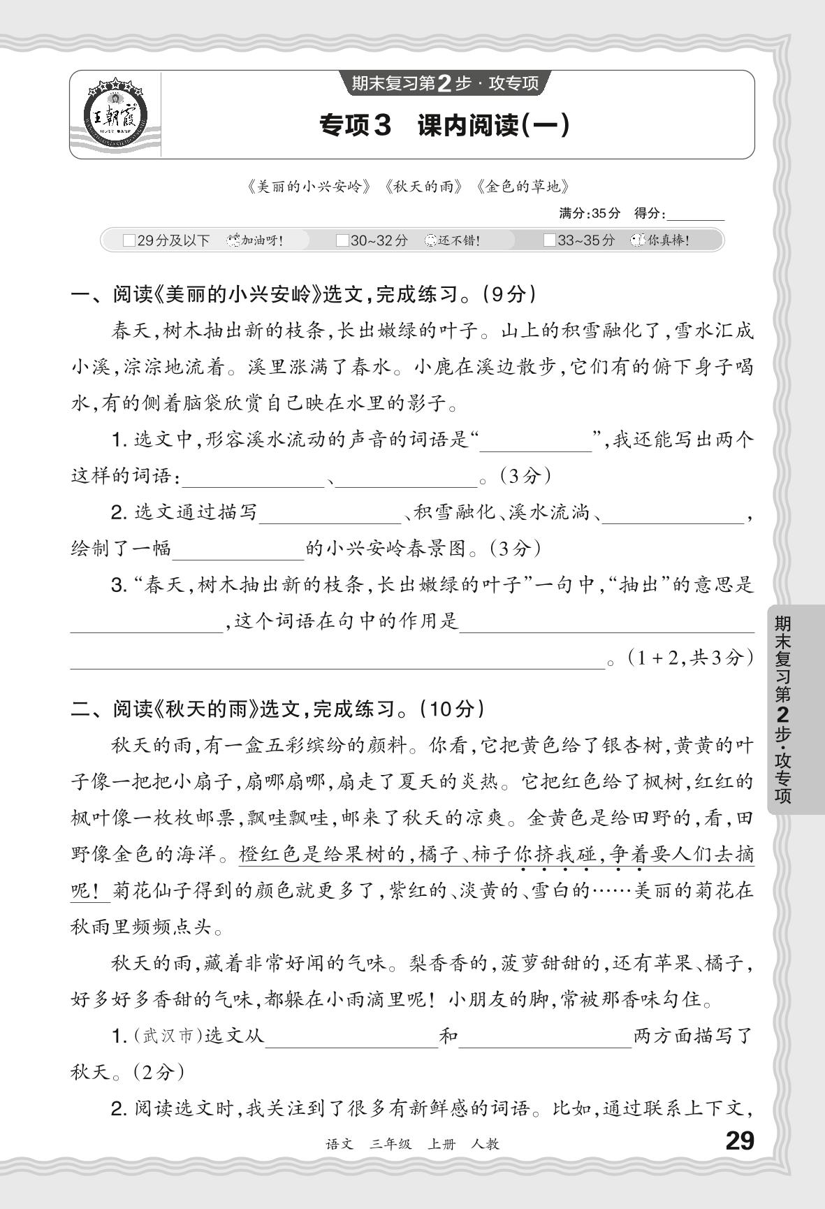 2023秋上册三年级语文人教版 期末专项·课内阅读(一)【3】
