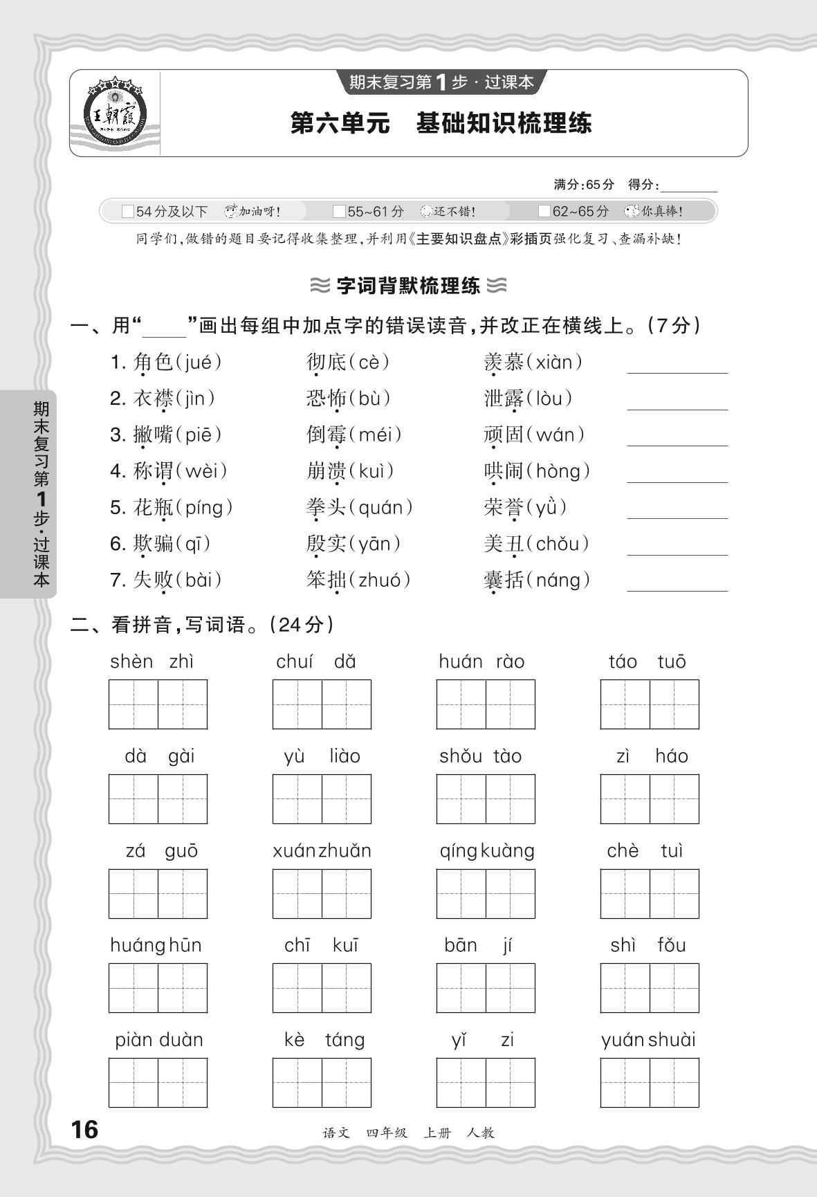 2023秋上册四年级语文人教版 期末过课本QMB版·第六单元 基础知识梳理练