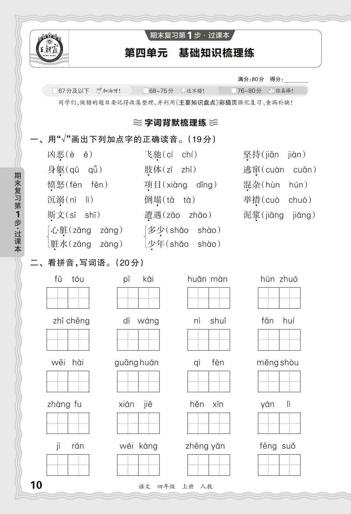 2023秋上册四年级语文人教版 期末过课本QMB版·第四单元 基础知识梳理练