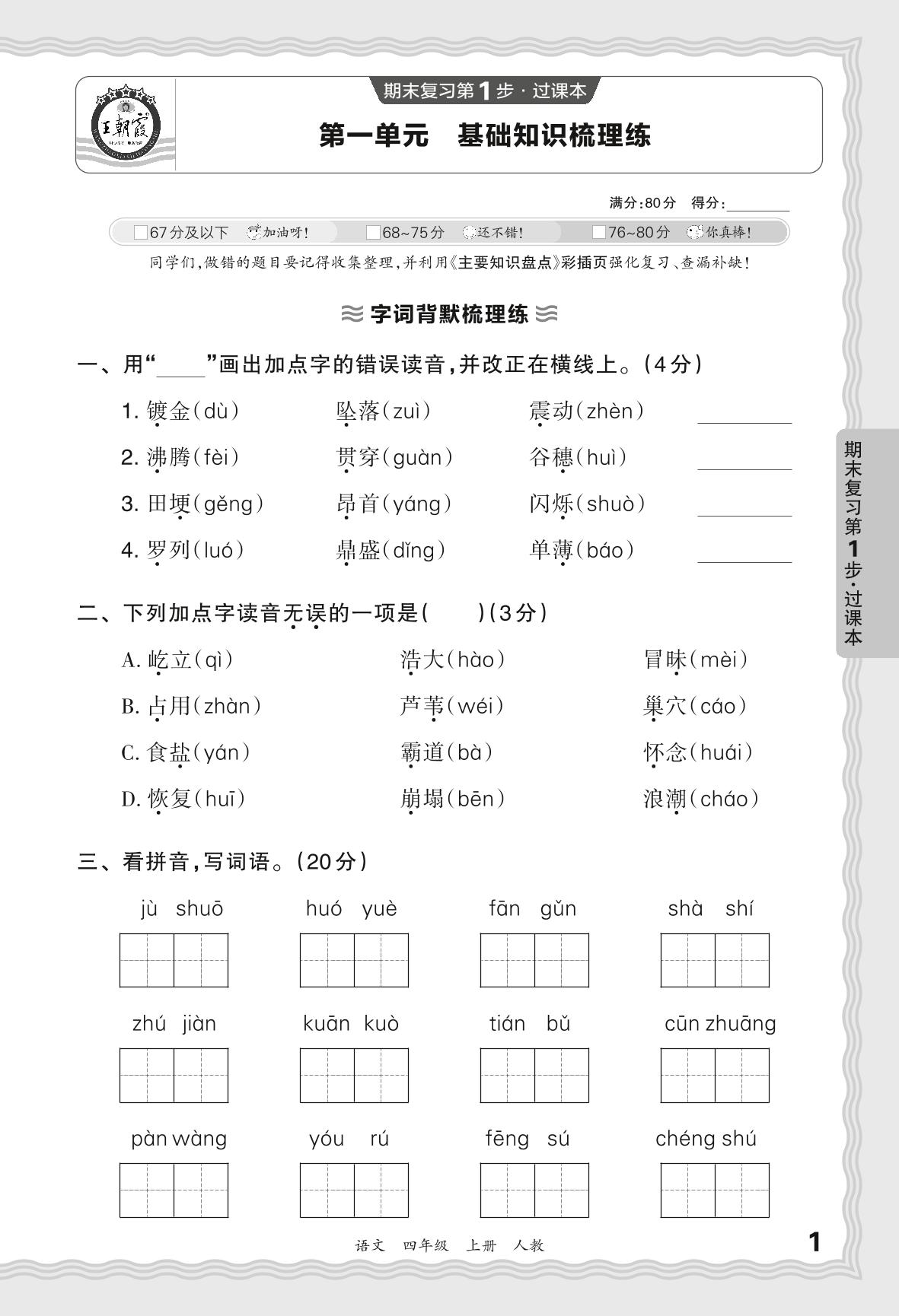 2023秋上册四年级语文人教版 期末过课本QMB版·第一单元 基础知识梳理练