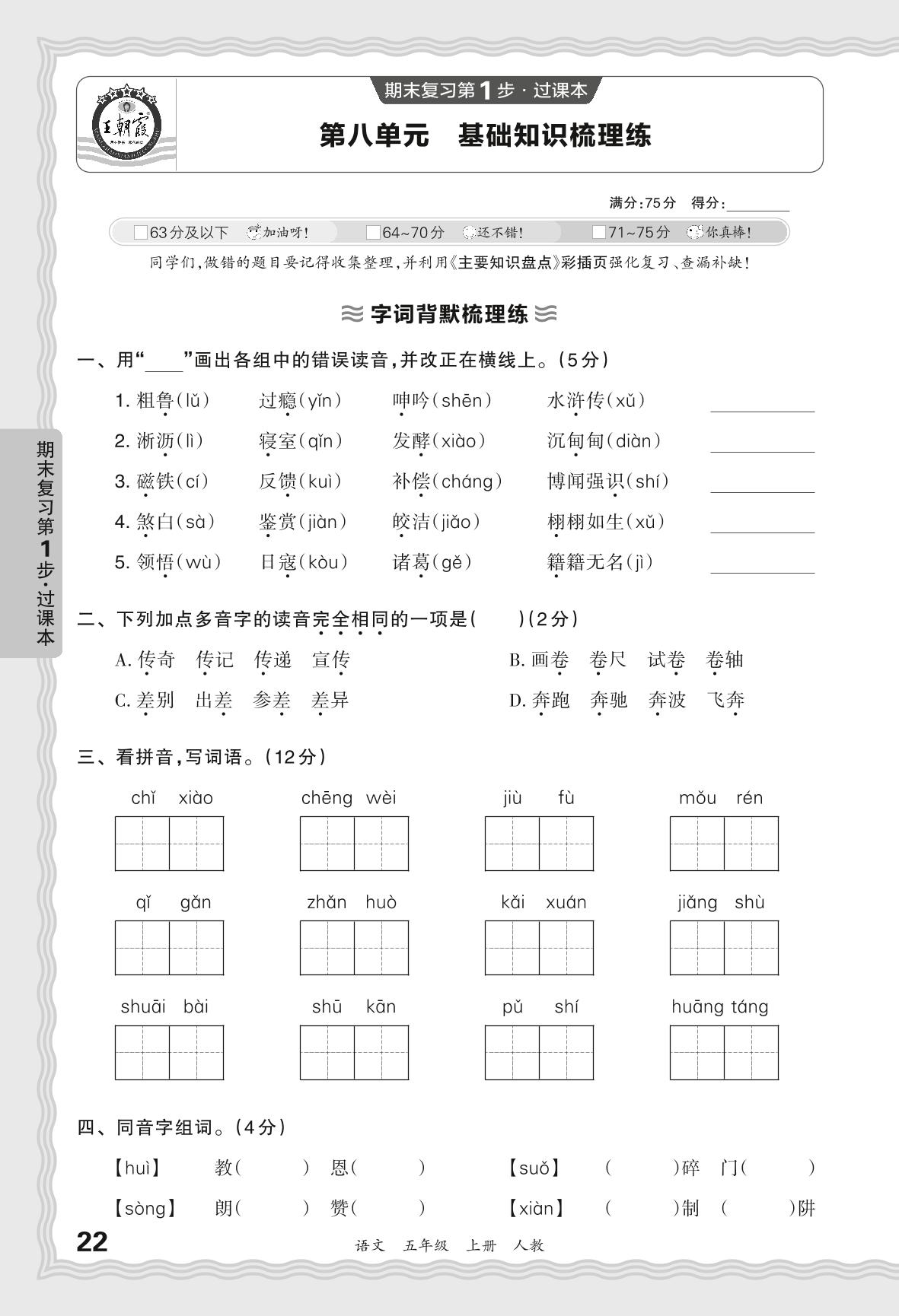 2023秋上册五年级语文人教版 期末过课本QMB版·第八单元 基础知识梳理练