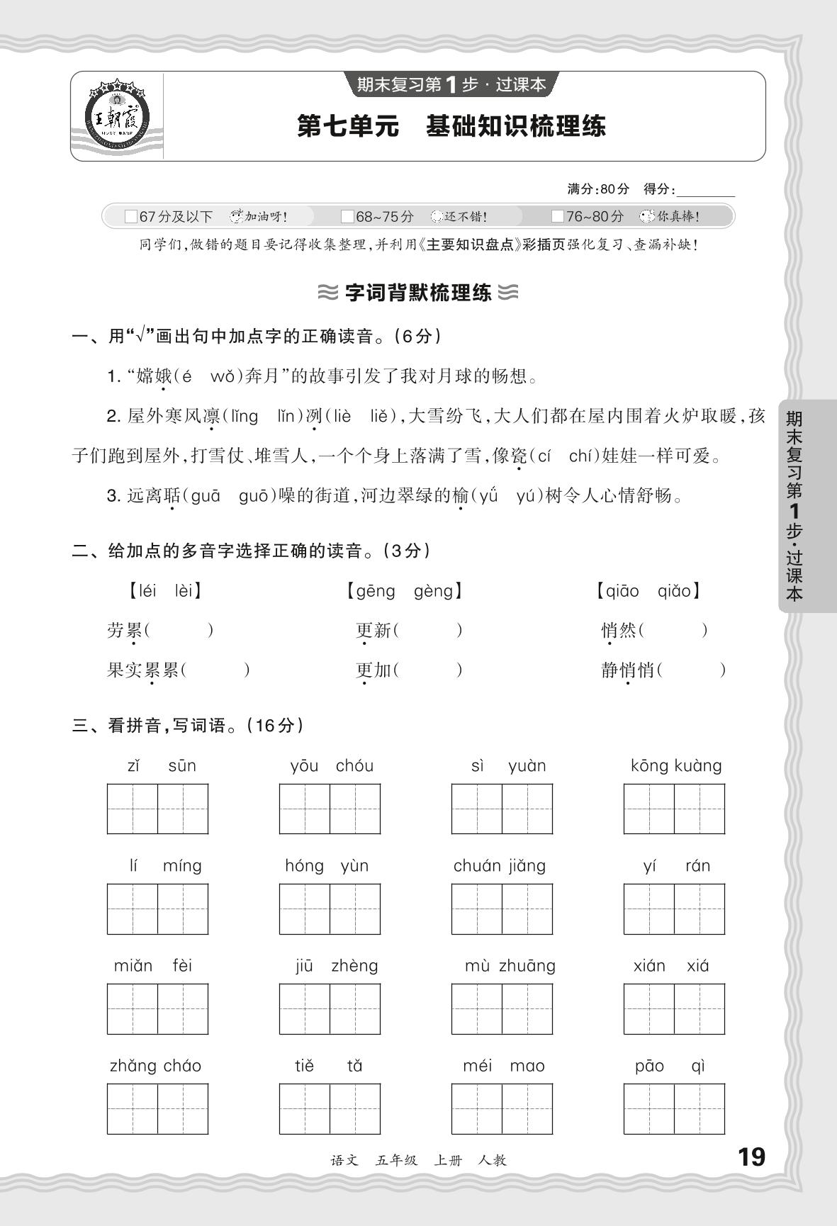 2023秋上册五年级语文人教版 期末过课本QMB版·第七单元 基础知识梳理练