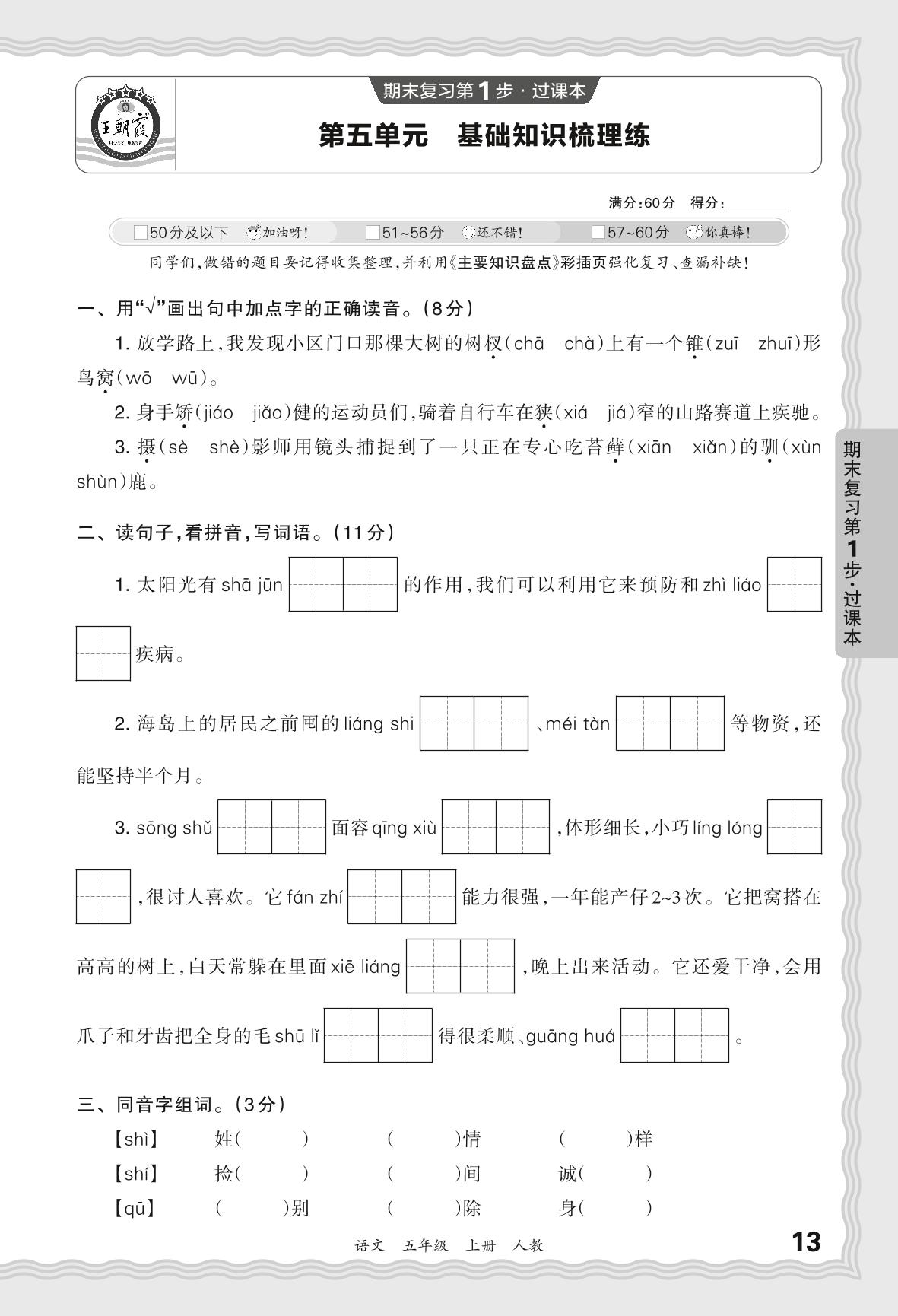 2023秋上册五年级语文人教版 期末过课本QMB版·第五单元 基础知识梳理练