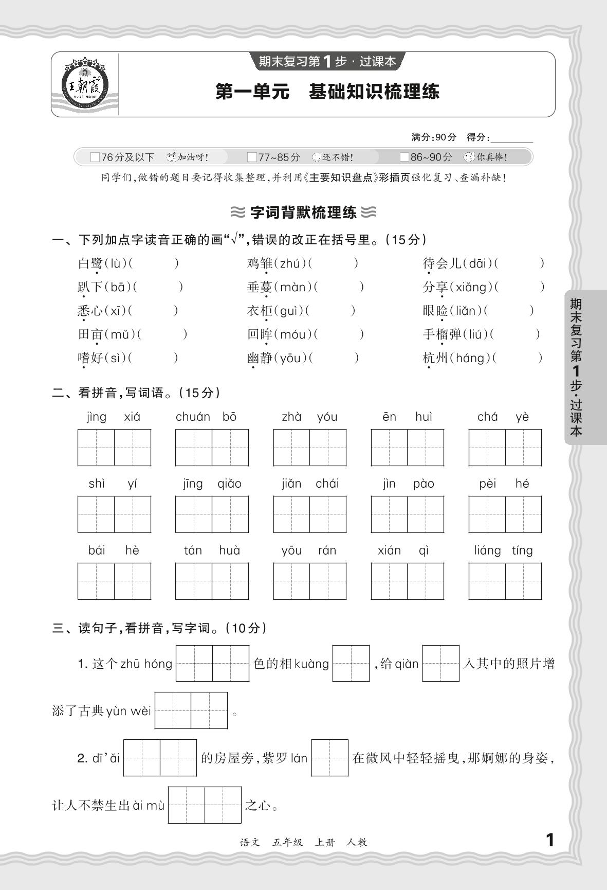 2023秋上册五年级语文人教版 期末过课本QMB版·第一单元 基础知识梳理练