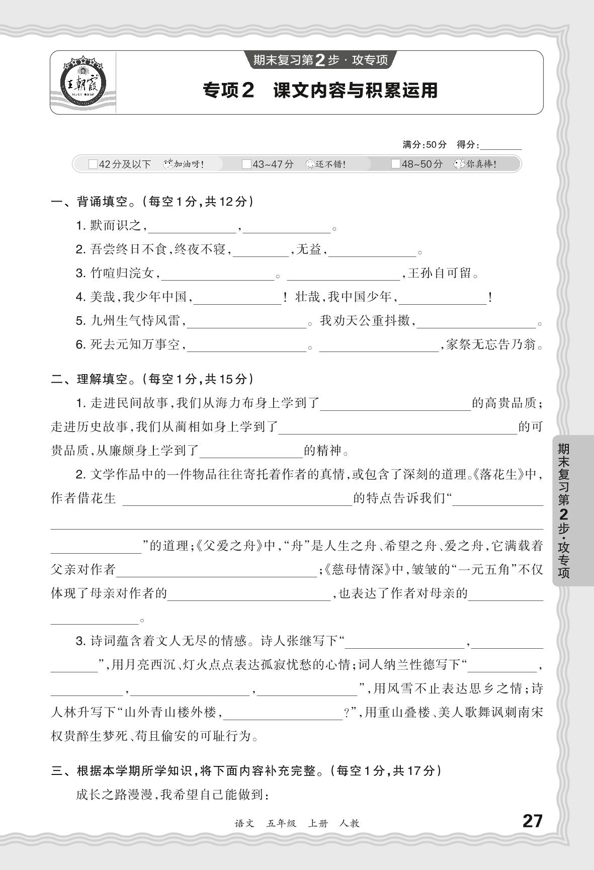 2023秋上册五年级语文人教版 期末专项·课文内容与积累运用【2】