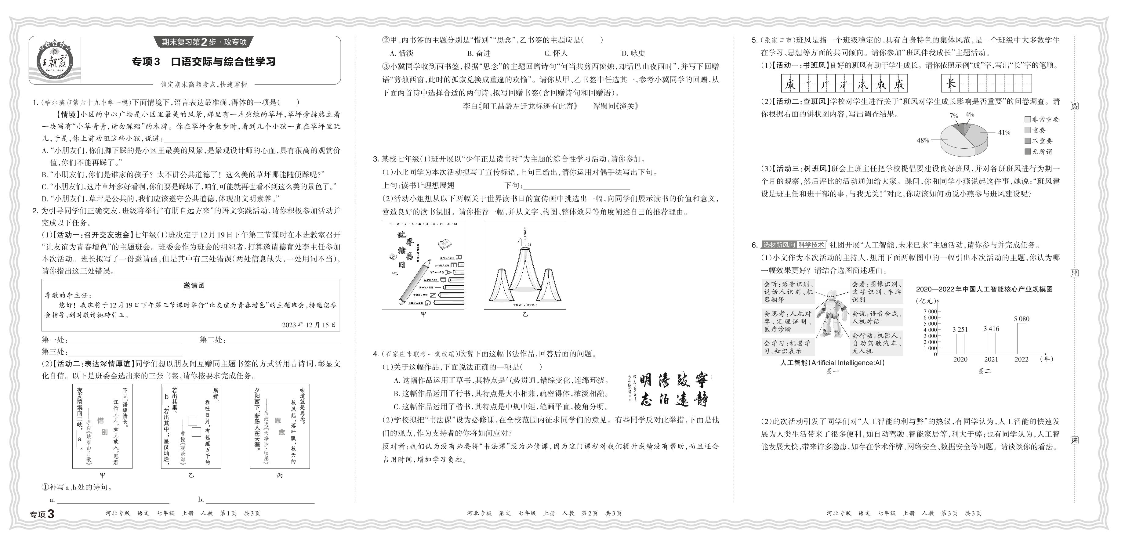 2023秋上册七年级语文人教版 期末专项卷·口语交际与综合性学习【3】