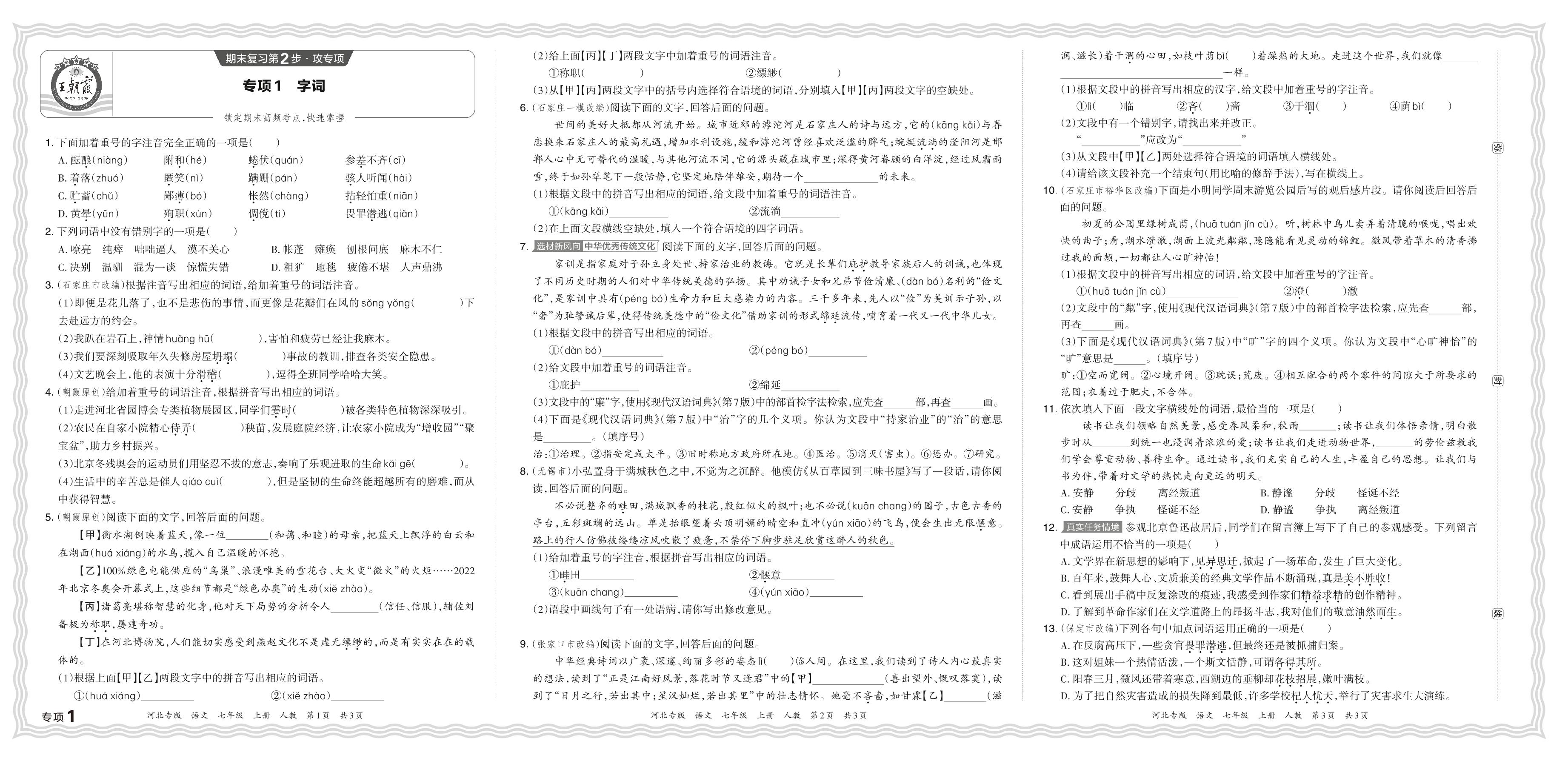 2023秋上册七年级语文人教版 期末专项卷·字词【1】