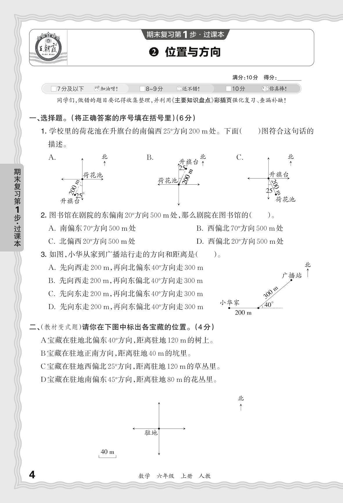 2023秋上册六年级数学人教版 期末过课本QMC版·位置与方向【2】