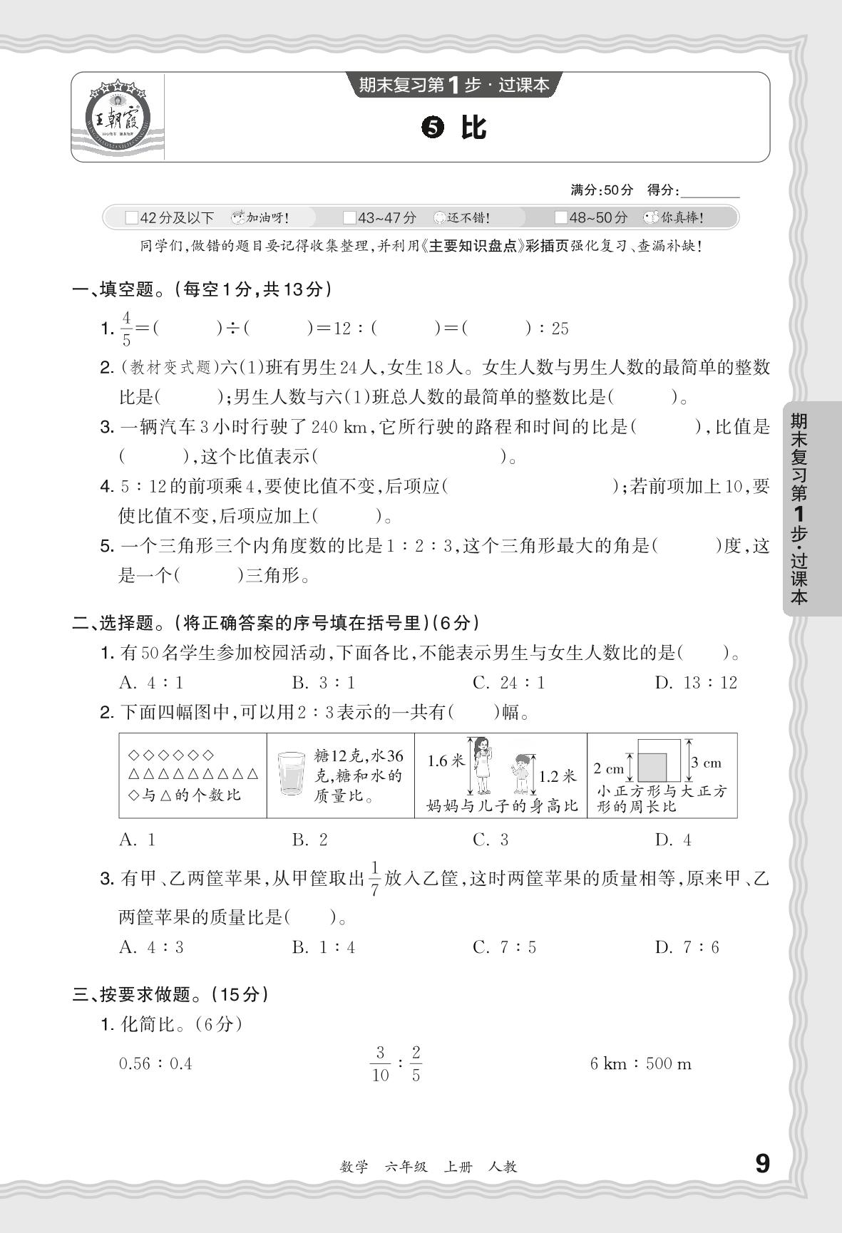 2023秋上册六年级数学人教版 期末过课本QMC版·比【5】
