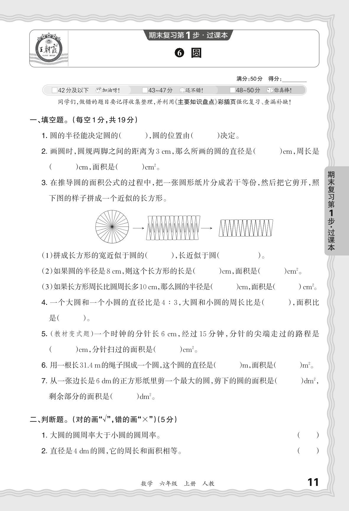 2023秋上册六年级数学人教版 期末过课本QMC版·圆【6】