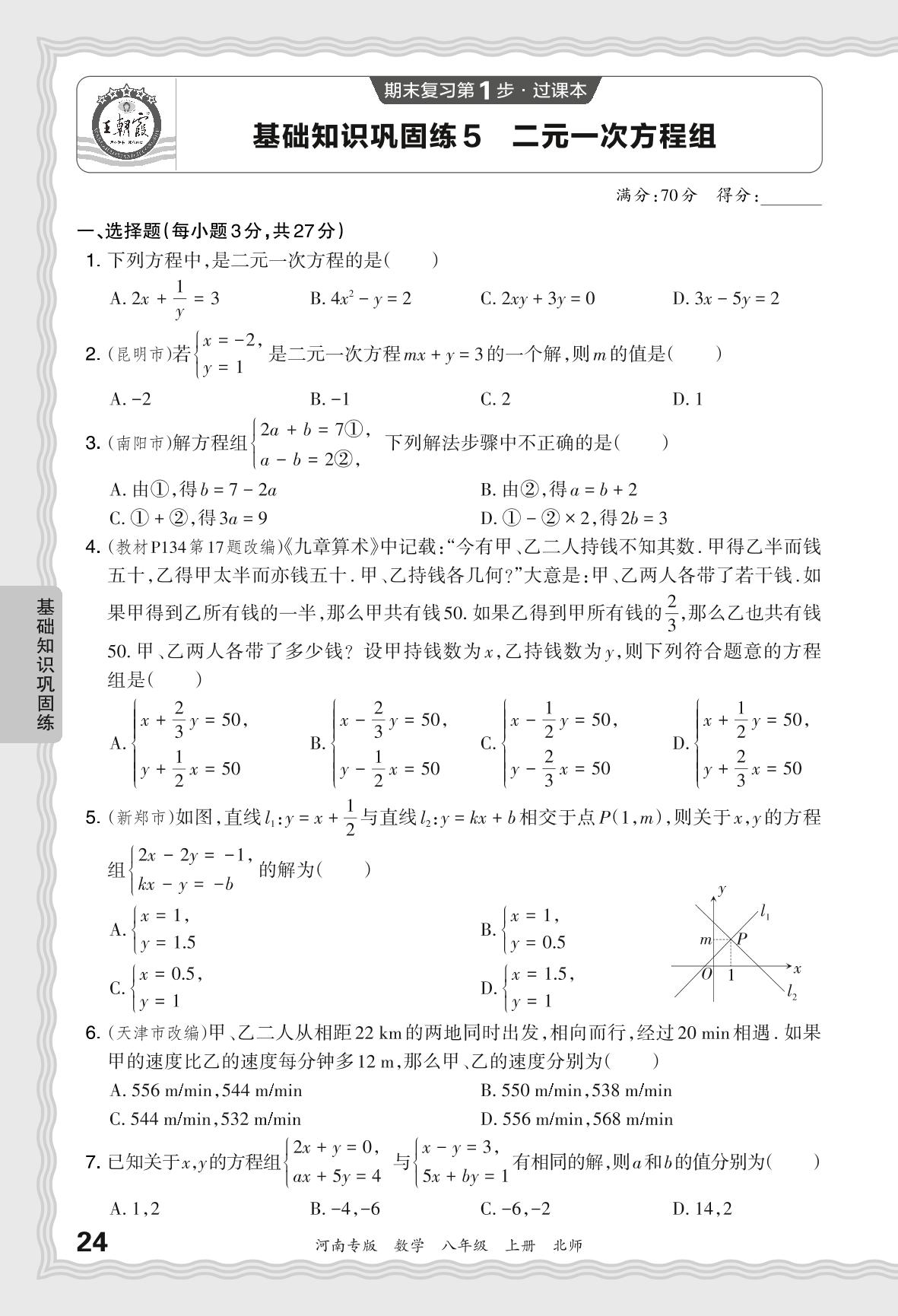 2023秋上册八年级数学北师版 期末过课本·基础知识巩固练 二元一次方程组_R231124165017211【5】