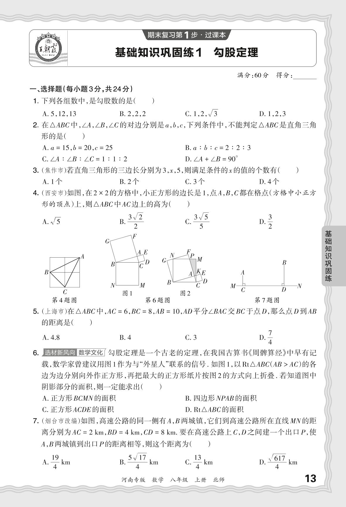 2023秋上册八年级数学北师版 期末过课本·基础知识巩固练 勾股定理_R231124165017017【1】