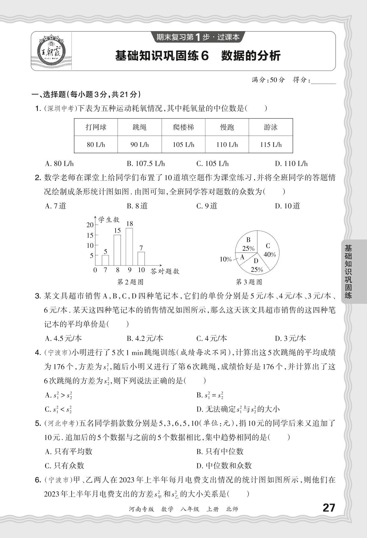2023秋上册八年级数学北师版 期末过课本·基础知识巩固练 数据的分析_R231124165019390【6】