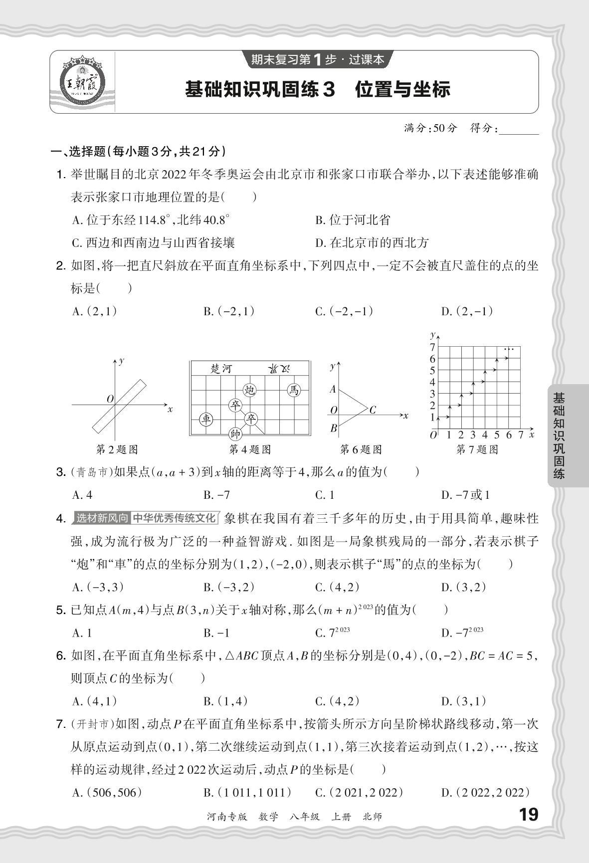 2023秋上册八年级数学北师版 期末过课本·基础知识巩固练 位置与坐标_R231124165019919【3】