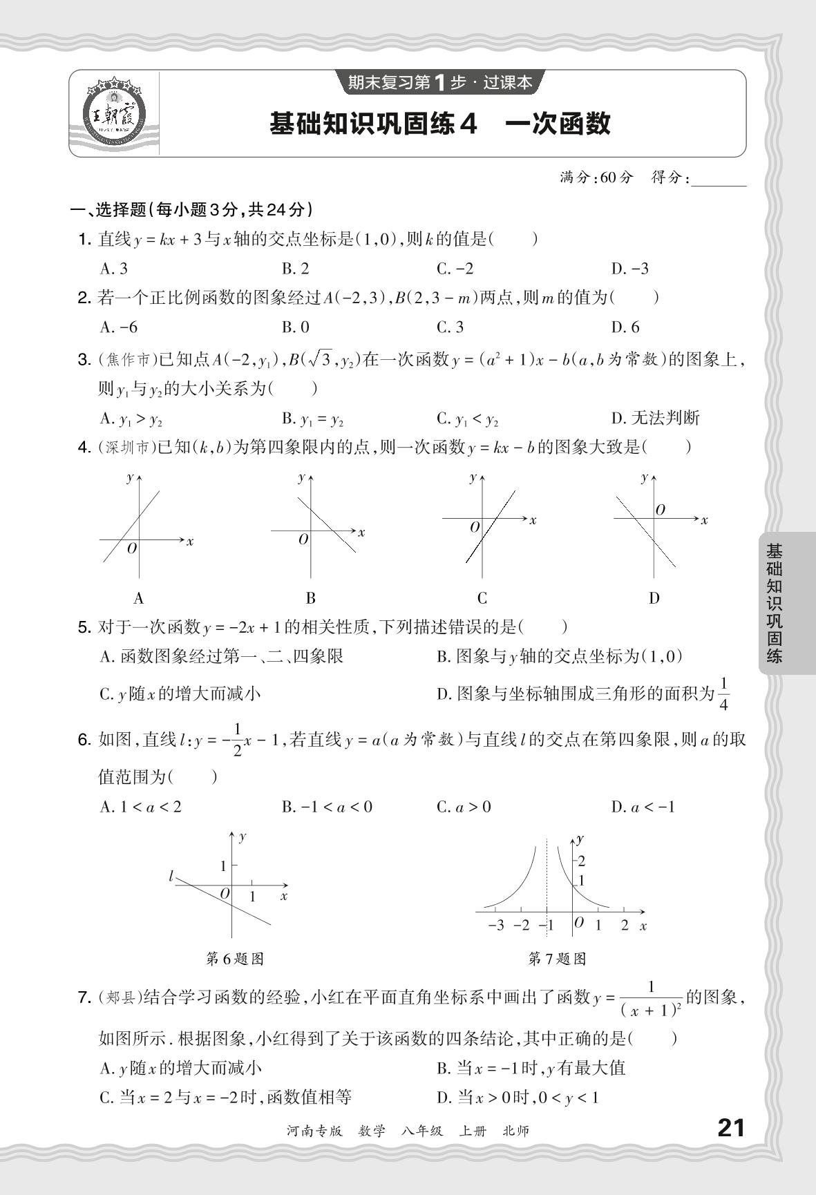 2023秋上册八年级数学北师版 期末过课本·基础知识巩固练 一次函数_R231124165019900【4】