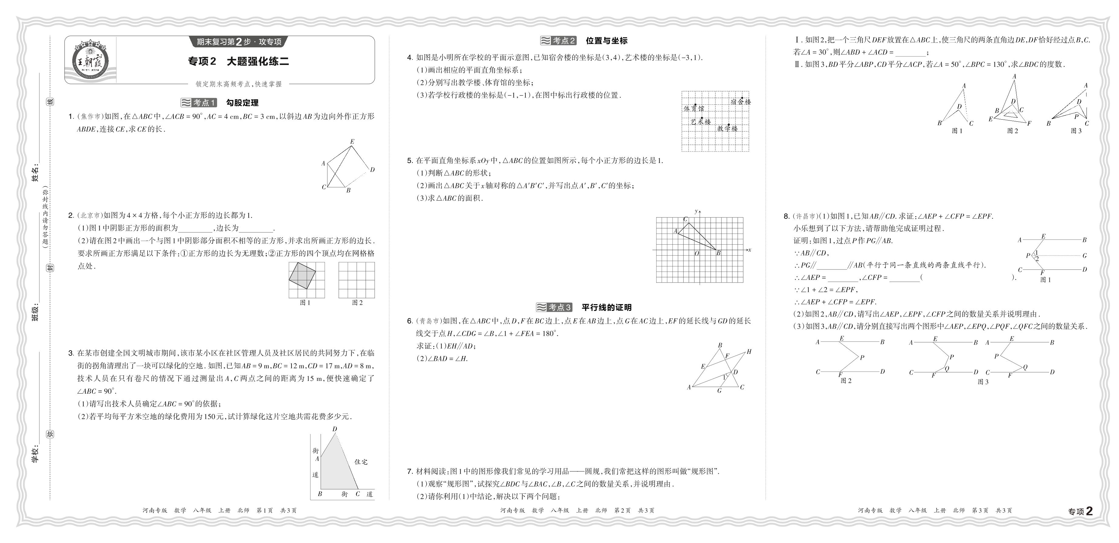 2023秋上册八年级数学北师版 期末专项卷·大题强化练二_R231124165023055