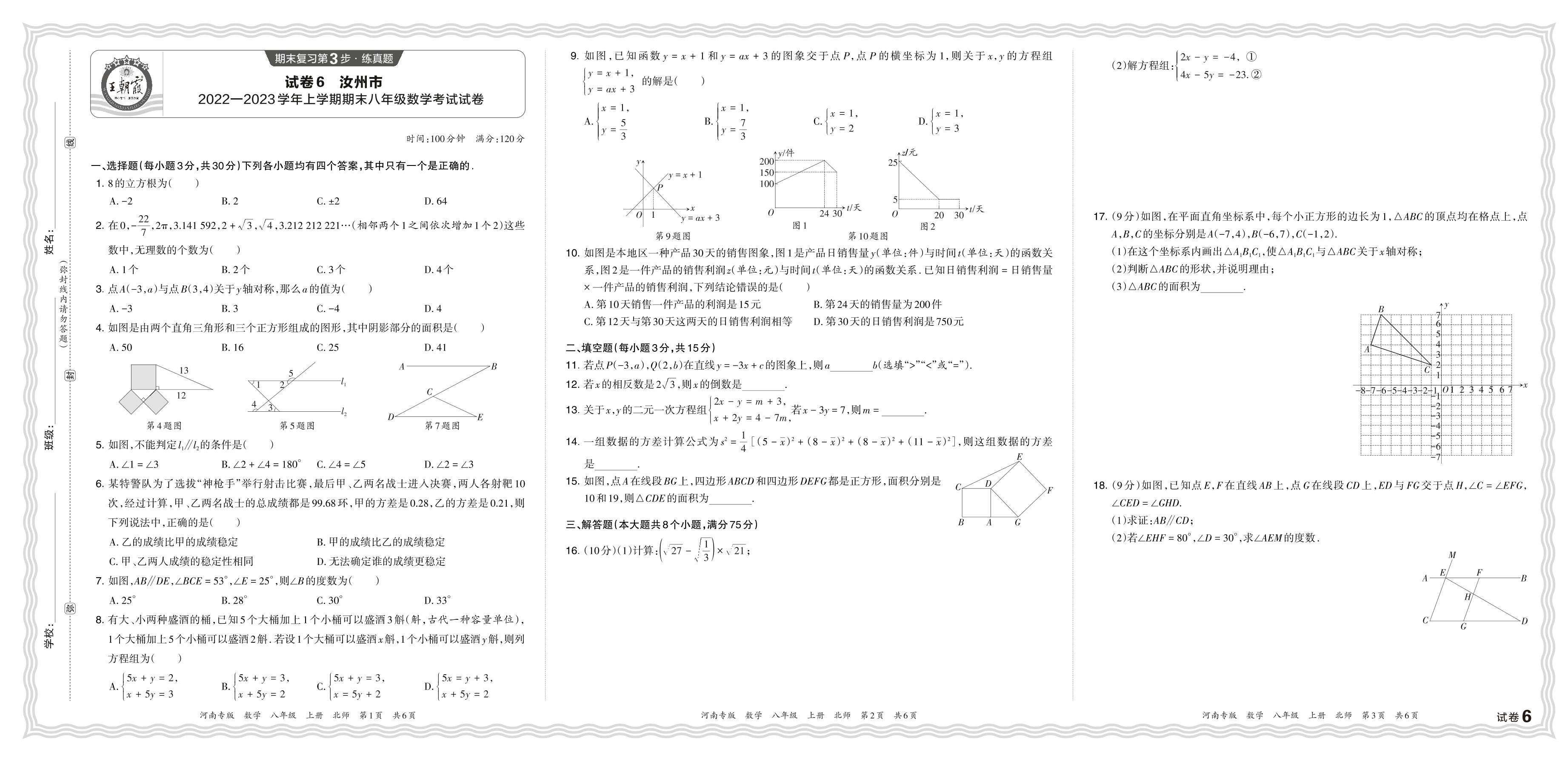 河南省平顶山市汝州市2022—2023学年上学期期末八年级数学考试试卷(北师版)【6】