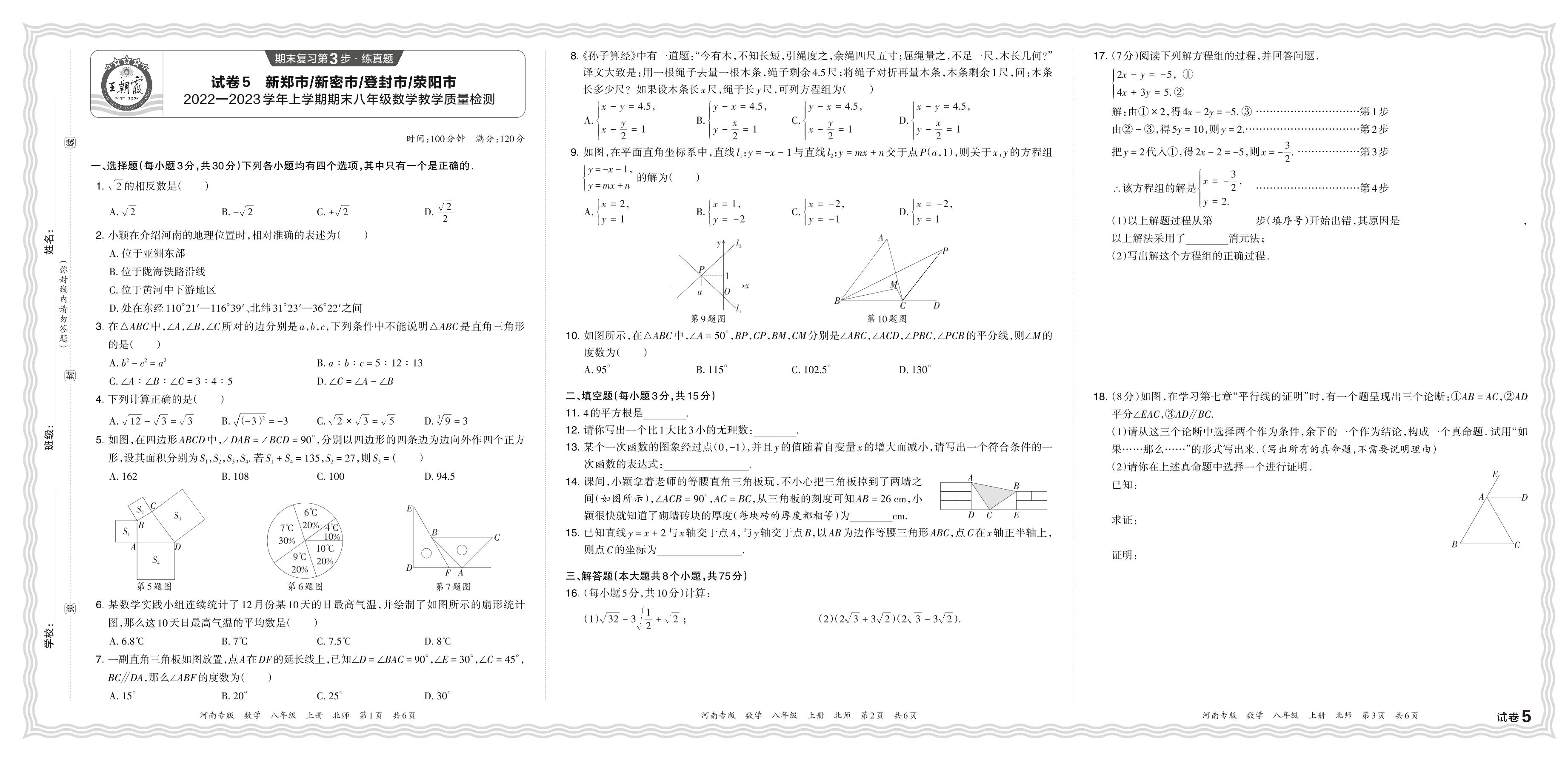 河南省新郑市、新密市、登封市、荥阳市2022—2023学年上学期期末八年级数学教学质量检测(北师版)【5】