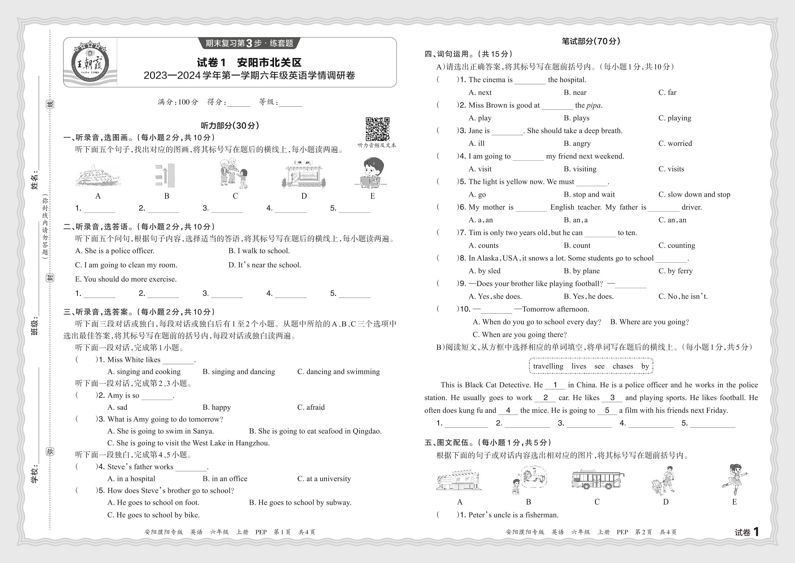 河南省安阳市北关区2023—2024学年第一学期六年级英语学情调研卷(人教PEP版)【1】