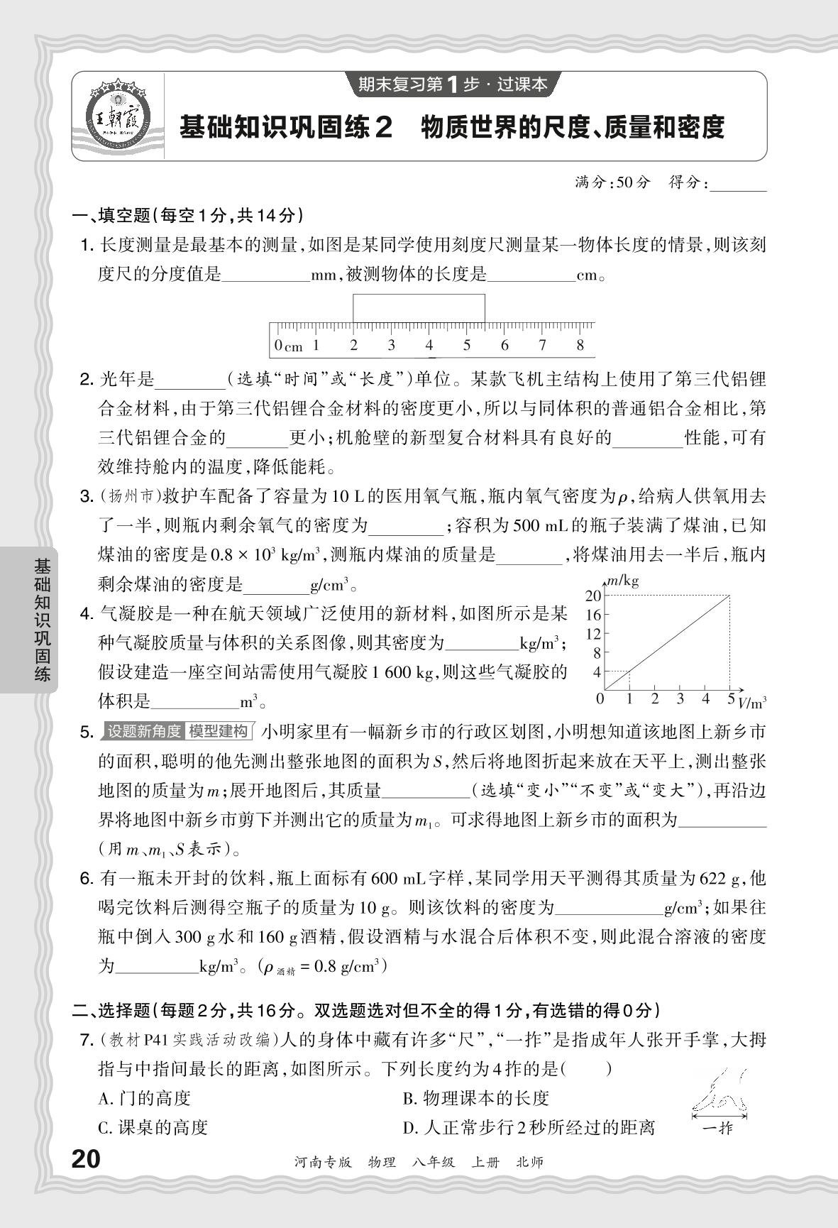 2023秋上册八年级物理北师版 期末过课本·基础知识巩固练 物质世界的尺度、质量和密度【2】