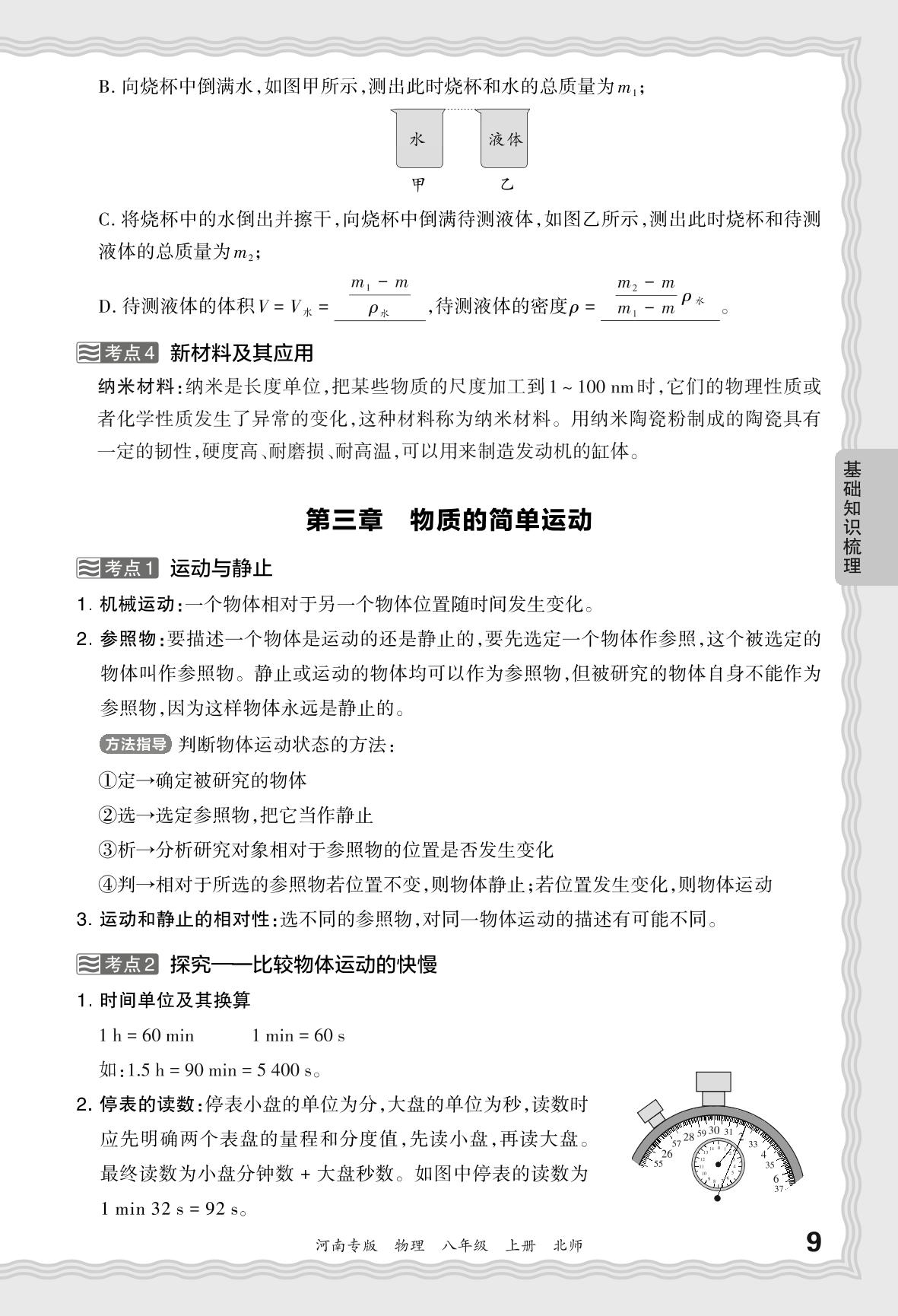 2023秋上册八年级物理北师版 期末过课本·基础知识梳理 第三章 物质的简单运动