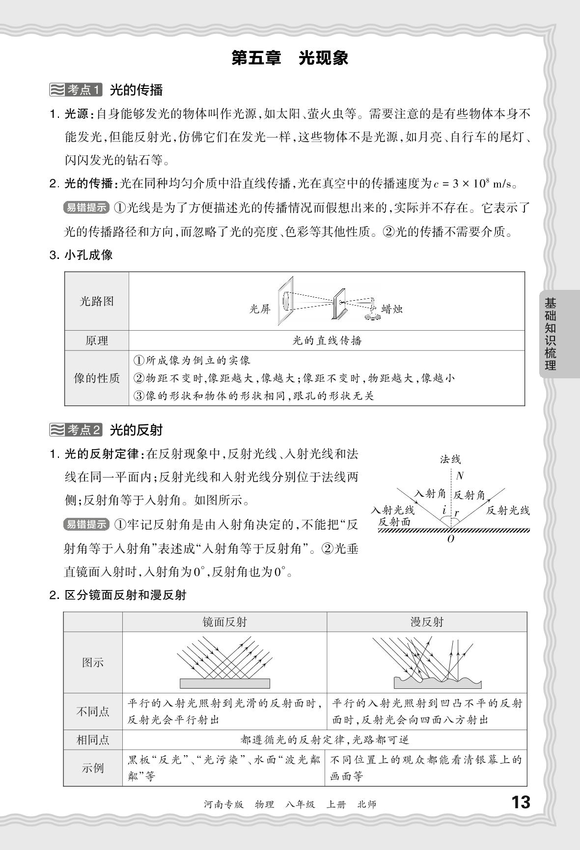 2023秋上册八年级物理北师版 期末过课本·基础知识梳理 第五章 光现象