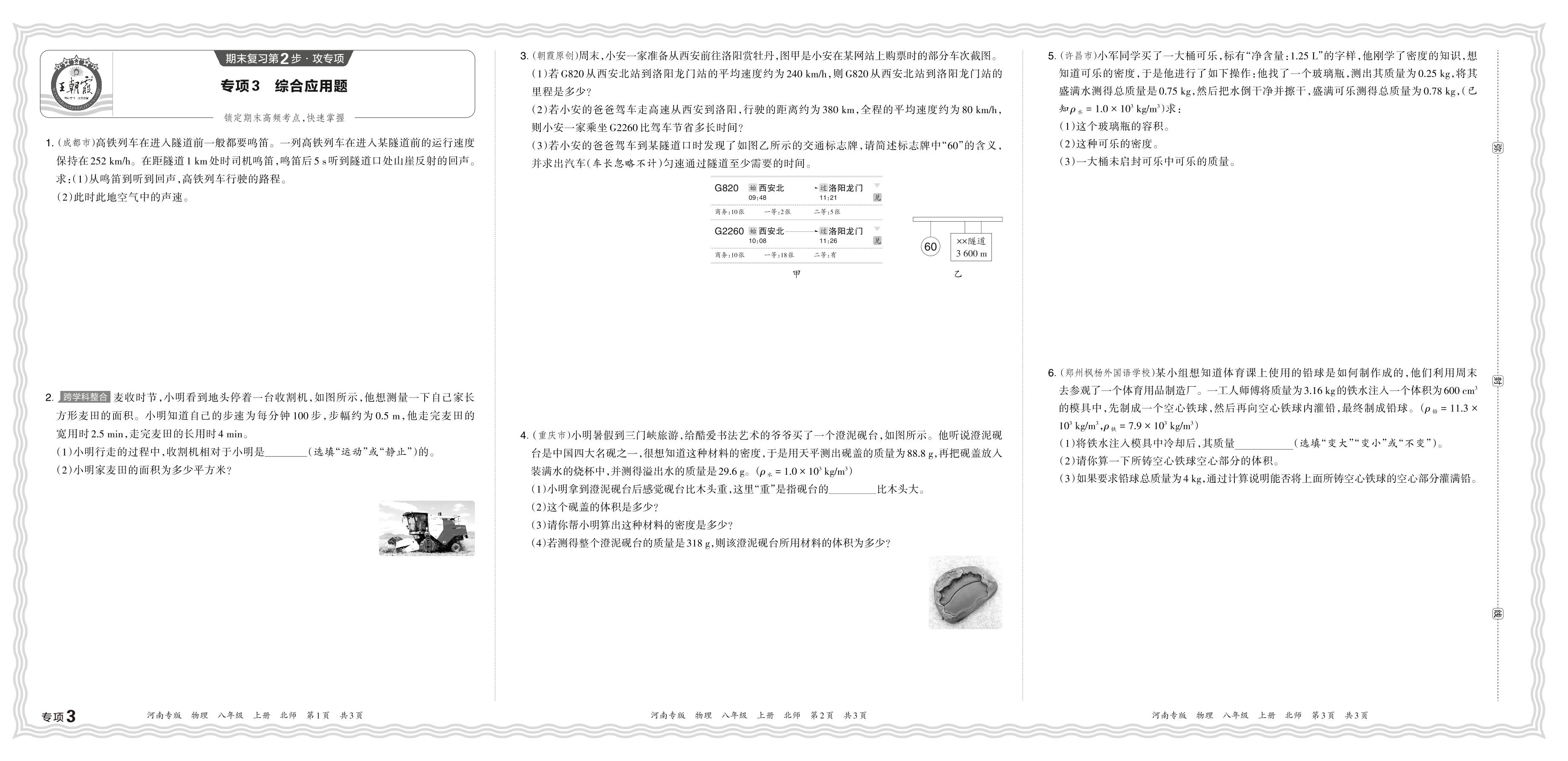 2023秋上册八年级物理北师版 期末专项卷·综合应用题【3】