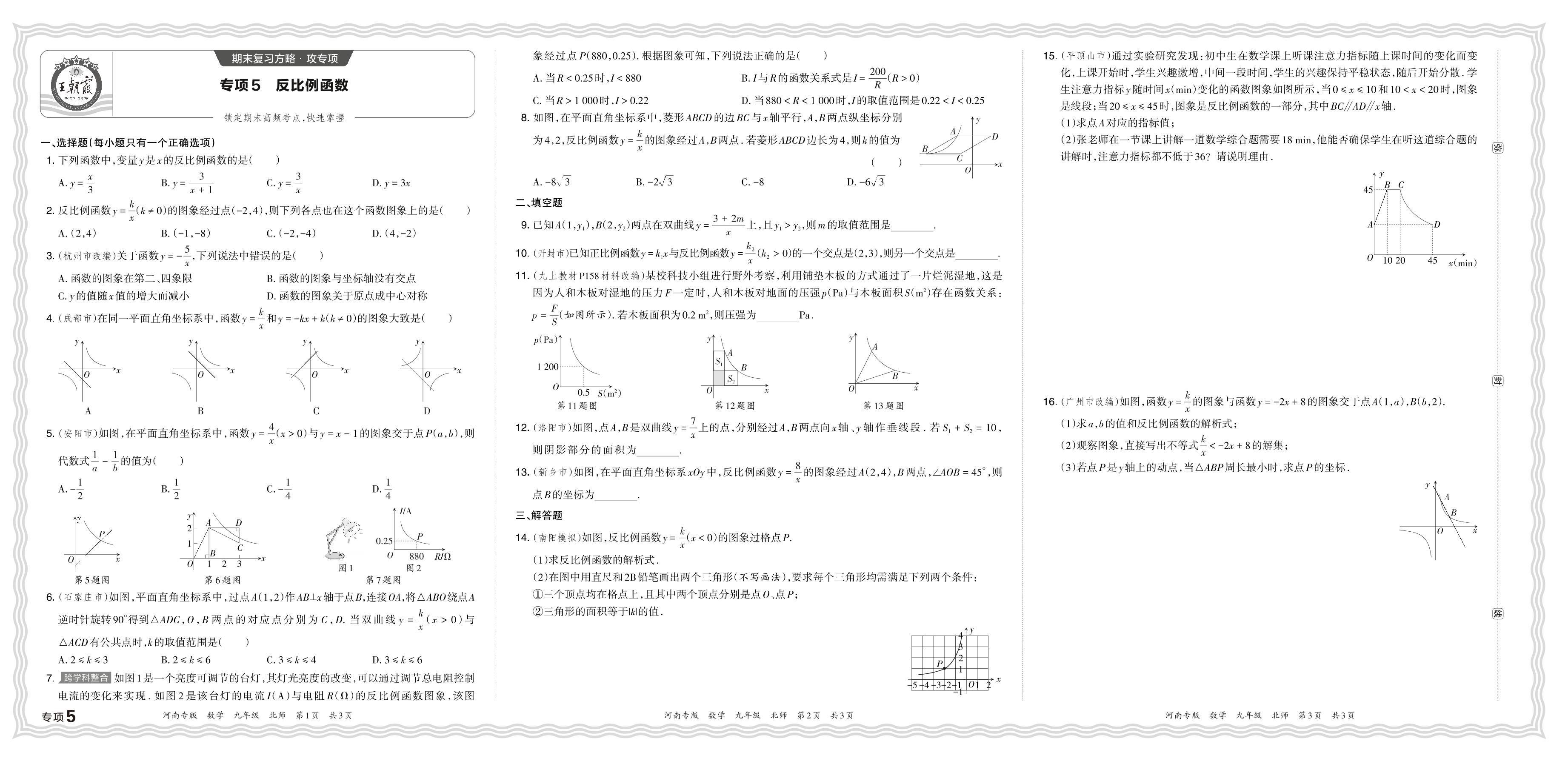 2023秋上册九年级数学北师版 期末专项卷·反比例函数【5】