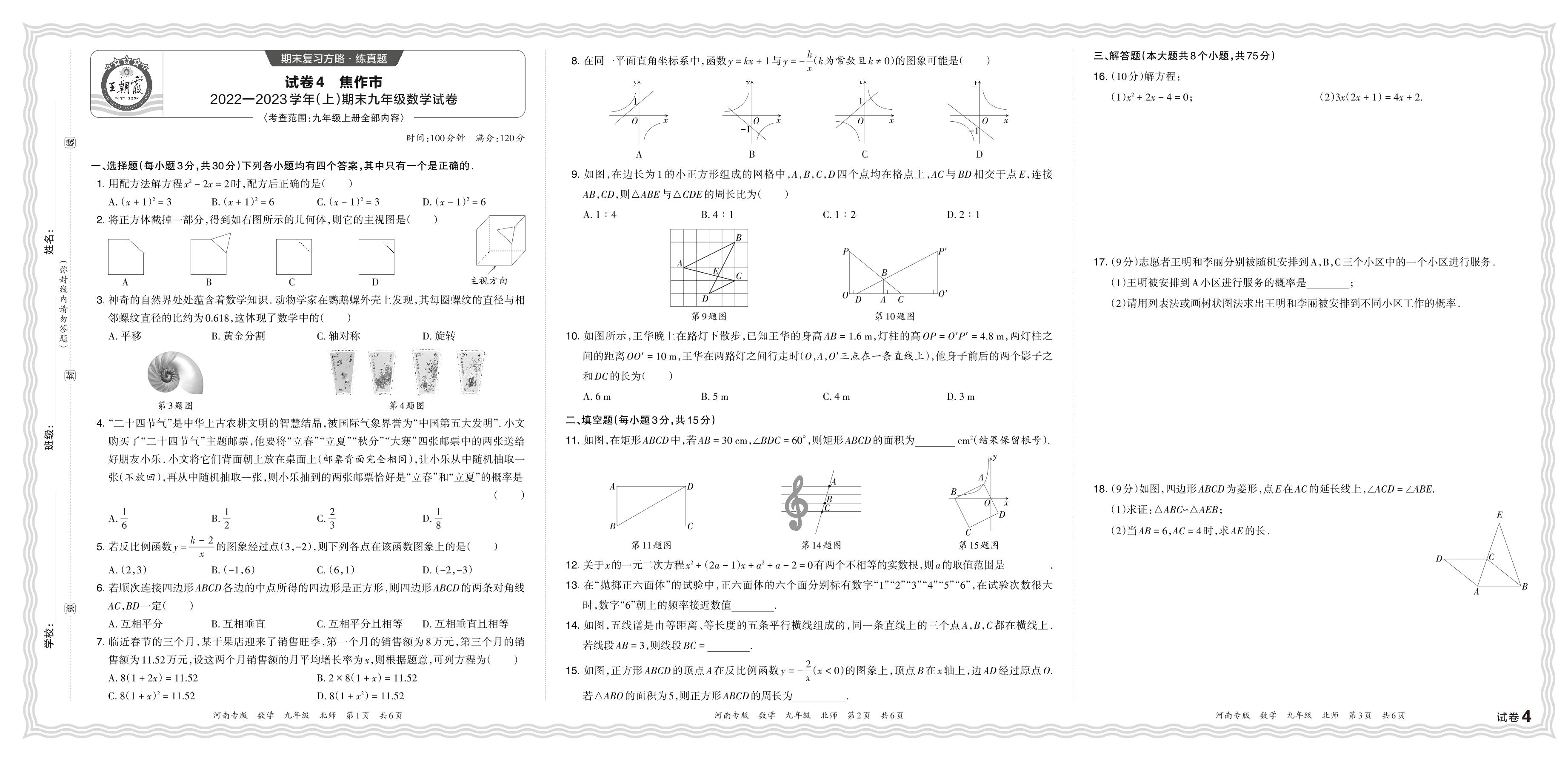 河南省焦作市2022—2023学年(上)期末九年级数学试卷(北师版)【4】