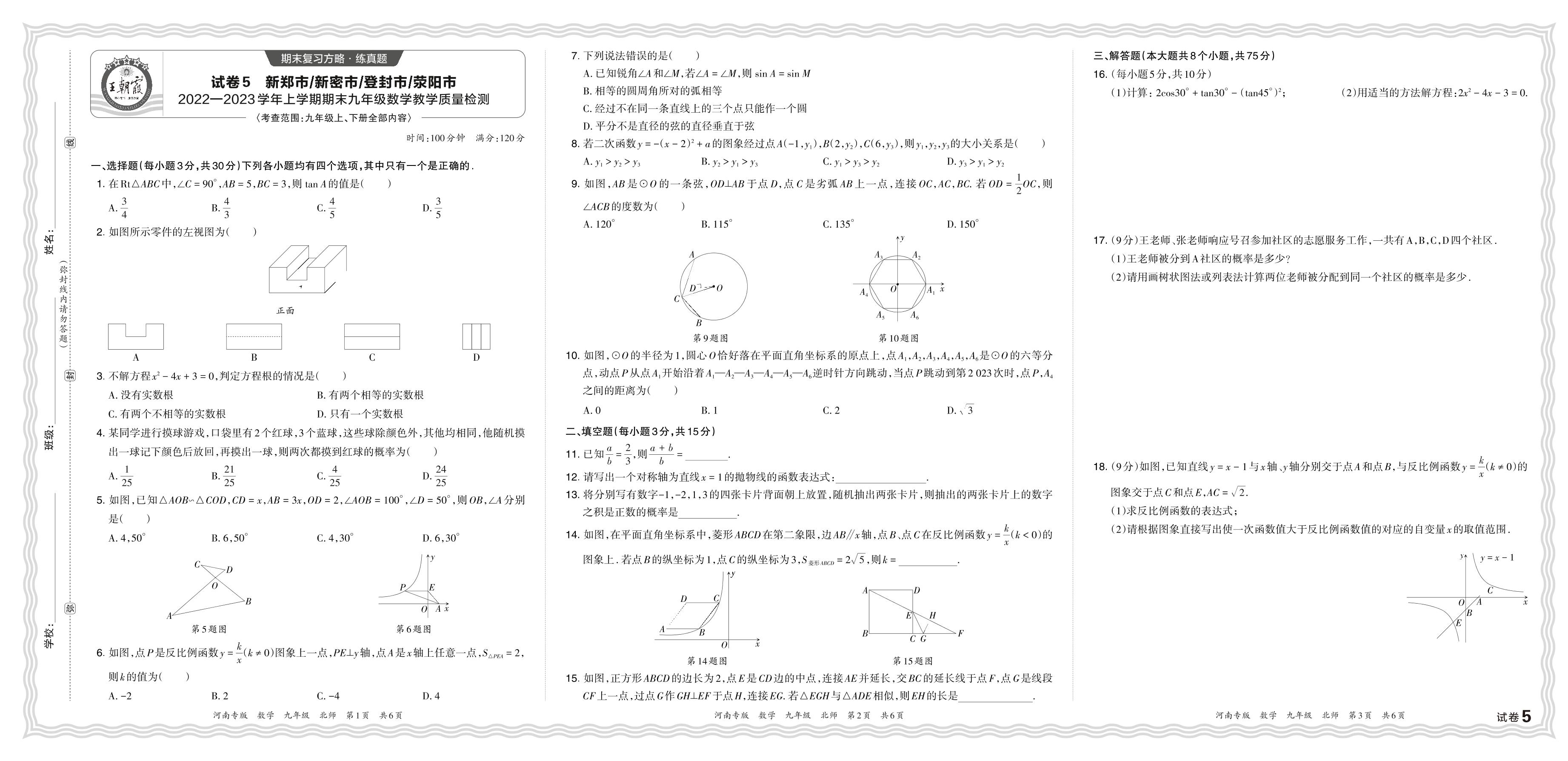 河南省新郑市、新密市、登封市、荥阳市2022—2023学年上学期期末九年级数学教学质量检测(北师版)【5】