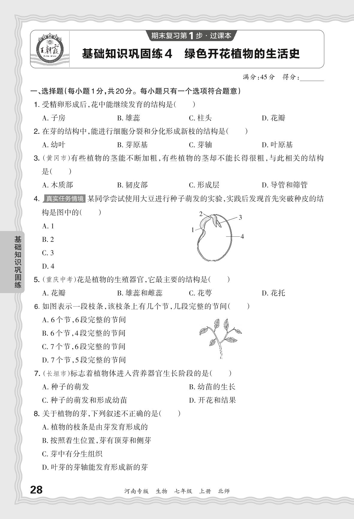 2023秋上册七年级生物北师版 期末过课本·基础知识巩固练 绿色开花植物的生活史【4】