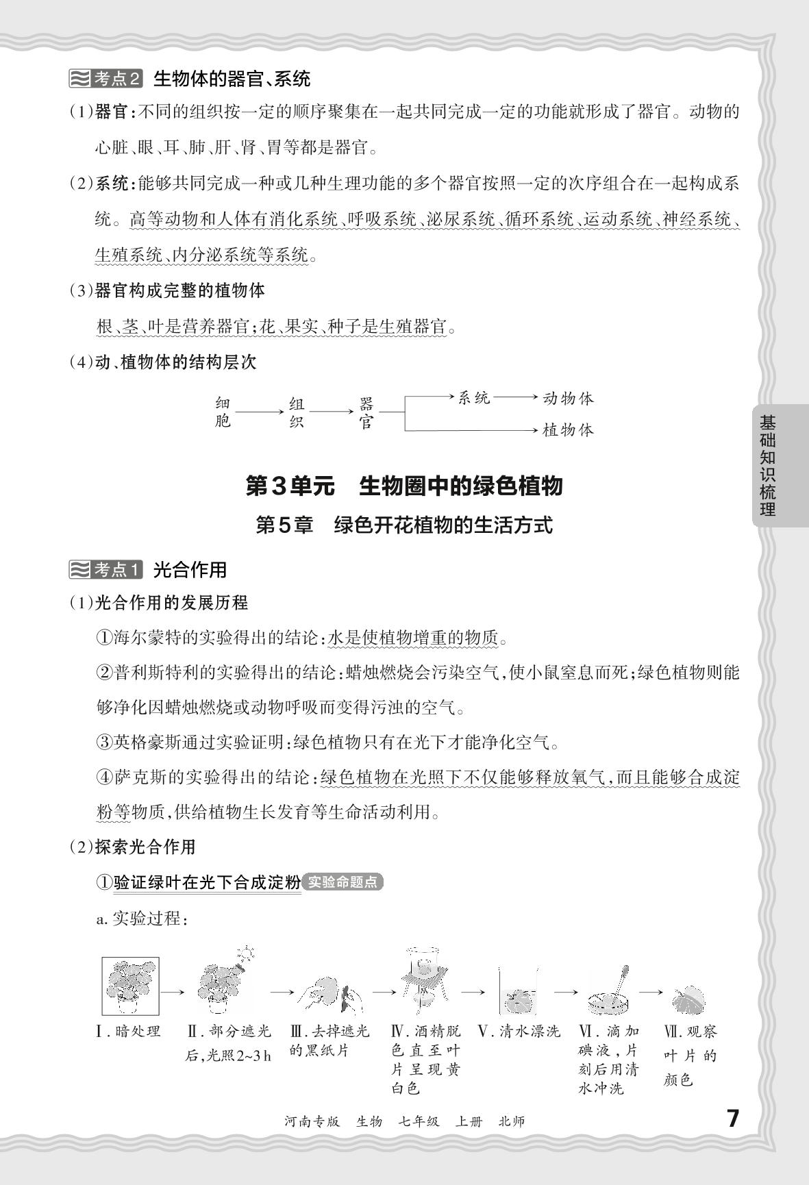 2023秋上册七年级生物北师版 期末过课本·基础知识梳理 第三单元 生物圈中的绿色植物