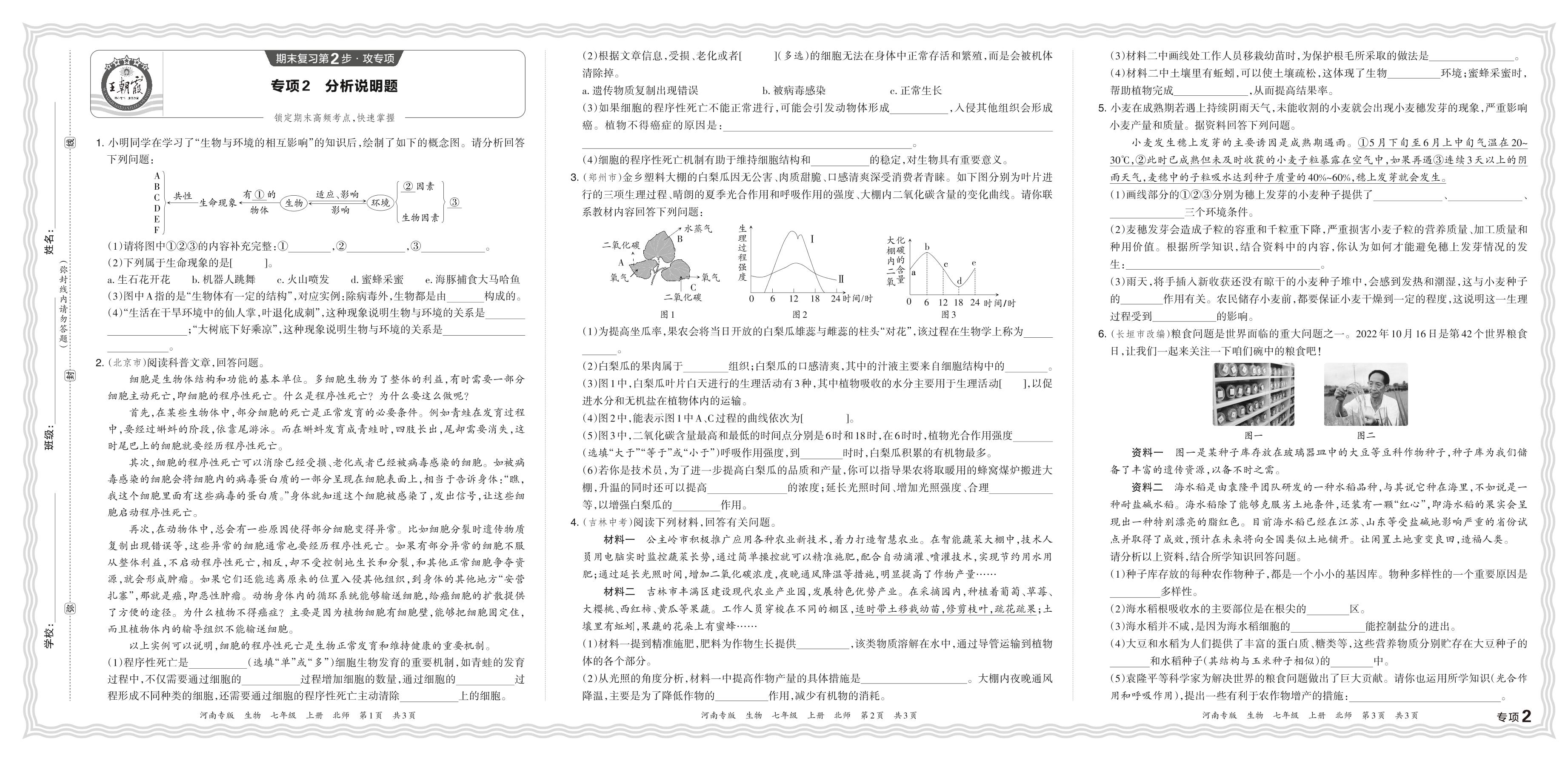 2023秋上册七年级生物北师版 期末专项卷·分析说明题【2】