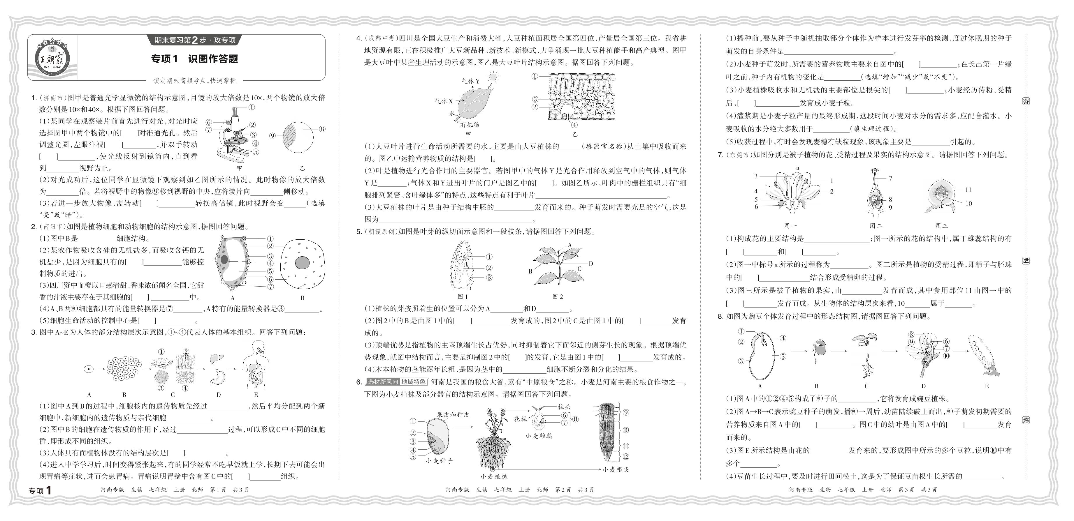2023秋上册七年级生物北师版 期末专项卷·识图作答题【1】
