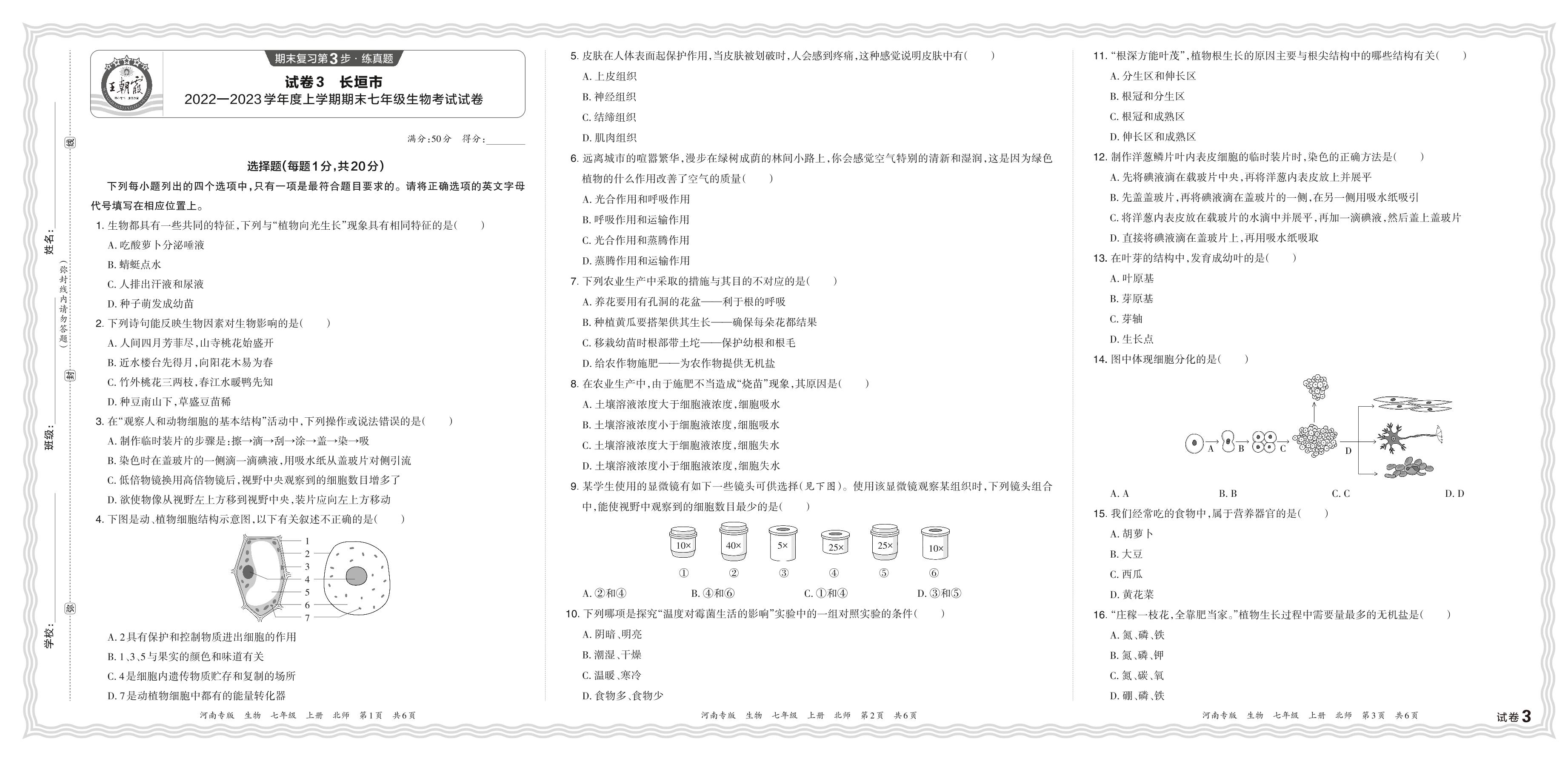 七年级生物北师版上册期末卷