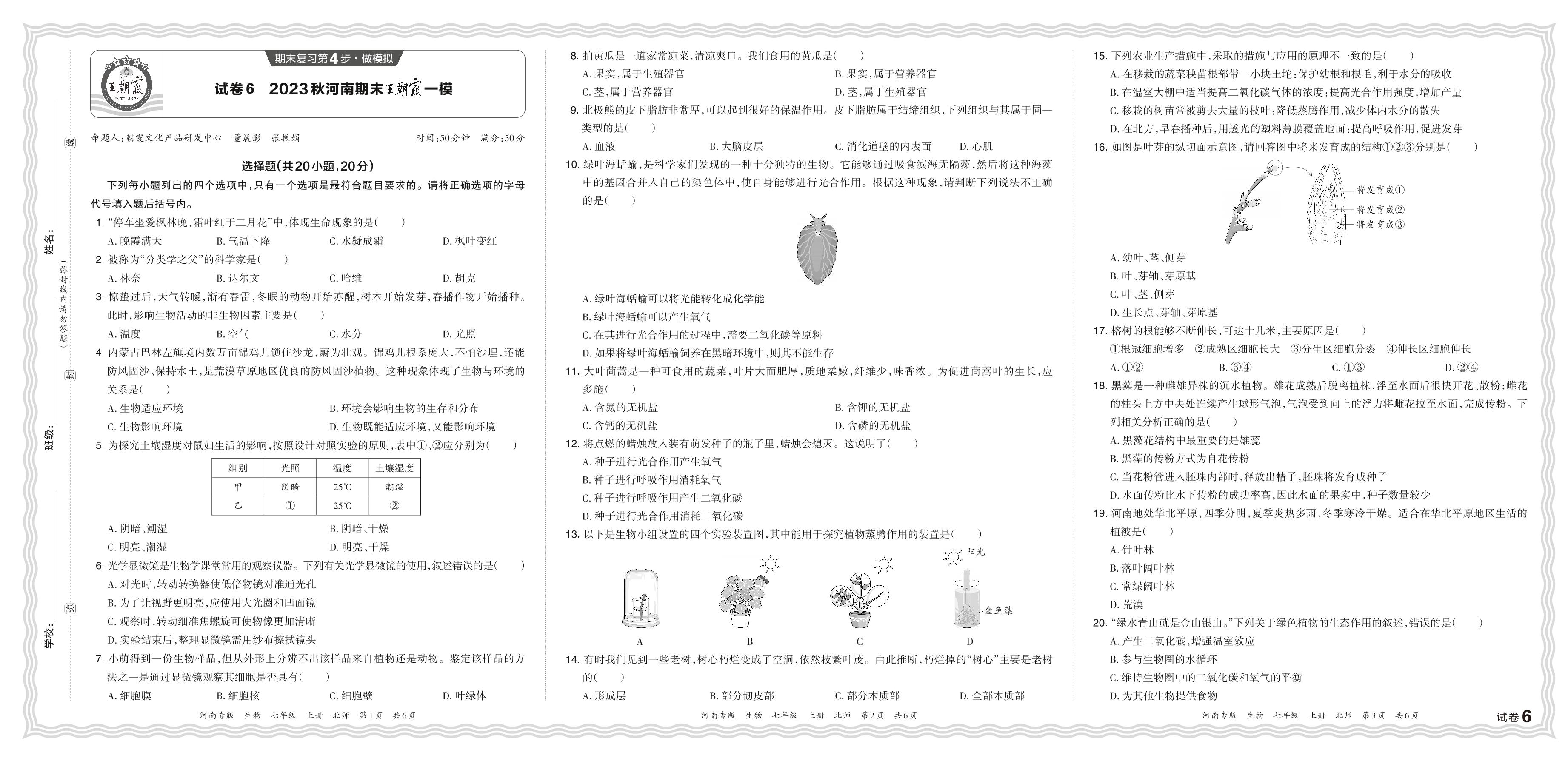 2023秋上册七年级生物北师版 河南期末王朝霞一模