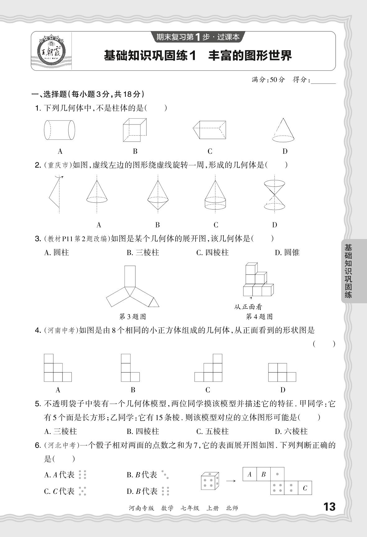 2023秋上册七年级数学北师版 期末过课本·基础知识巩固练 丰富的图形世界_R231124172601213【1】