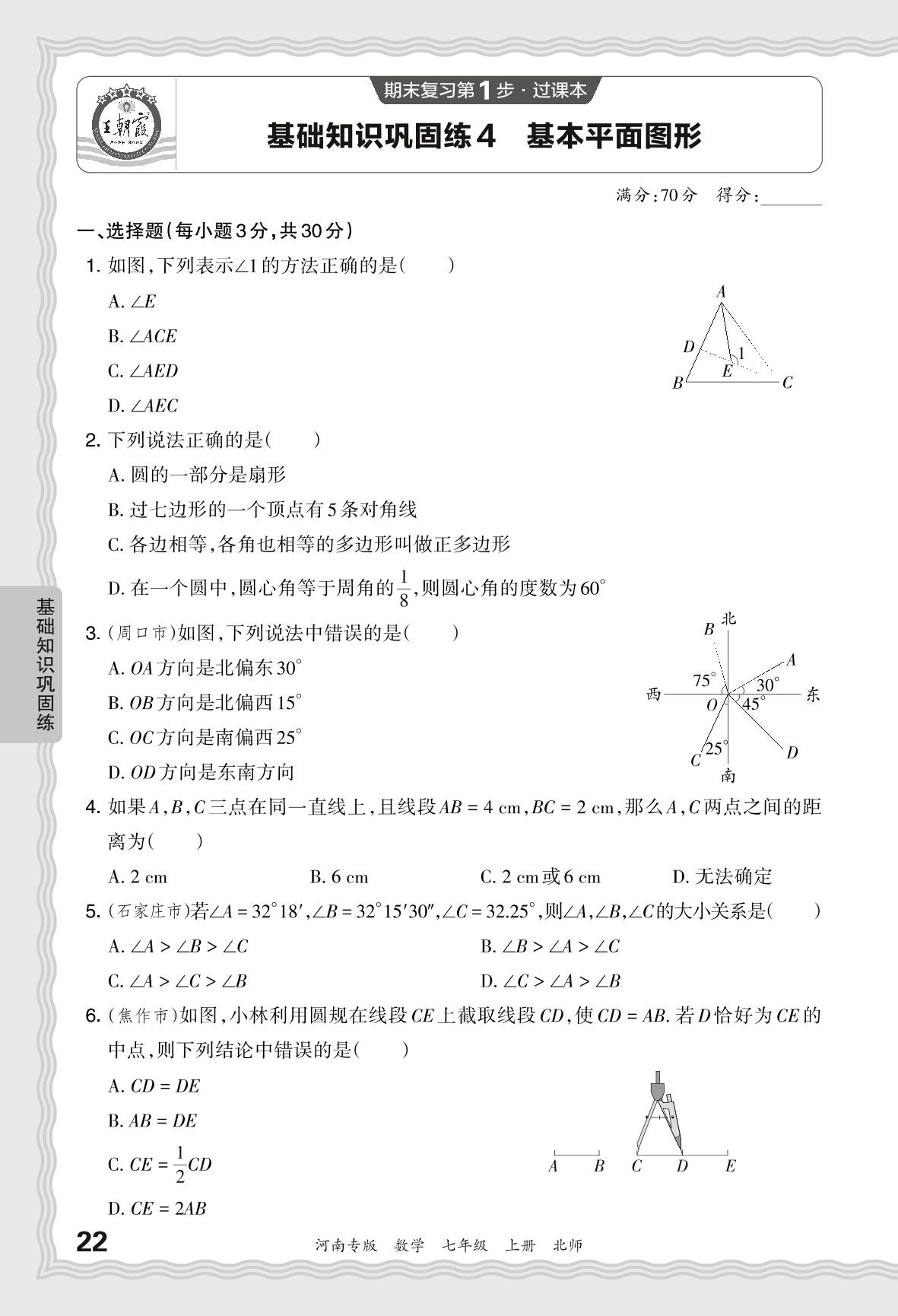 2023秋上册七年级数学北师版 期末过课本·基础知识巩固练 基本平面图形_R231124172601525【4】