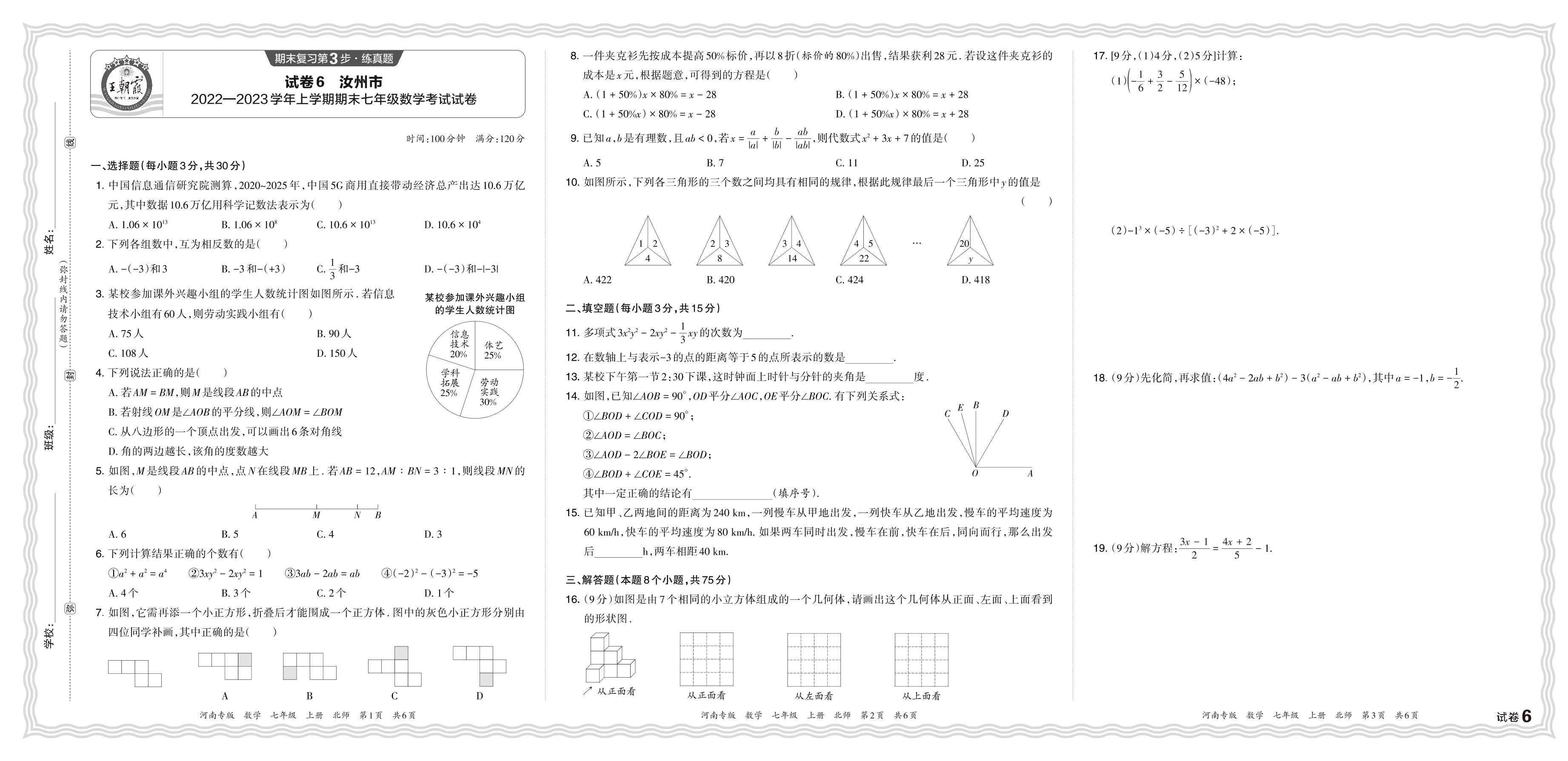 七年级数学北师版上册期末卷