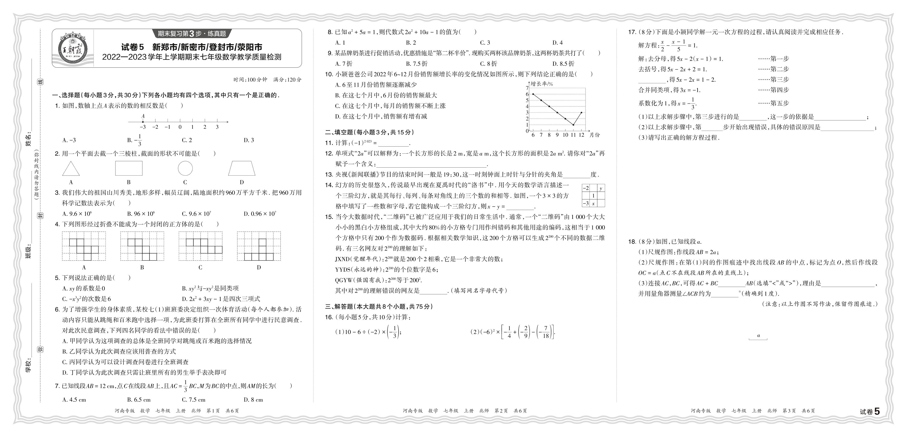 河南省新郑市、新密市、登封市荥阳市2022—2023学年上学期期末七年级数学教学质量检测(北师版)【5】