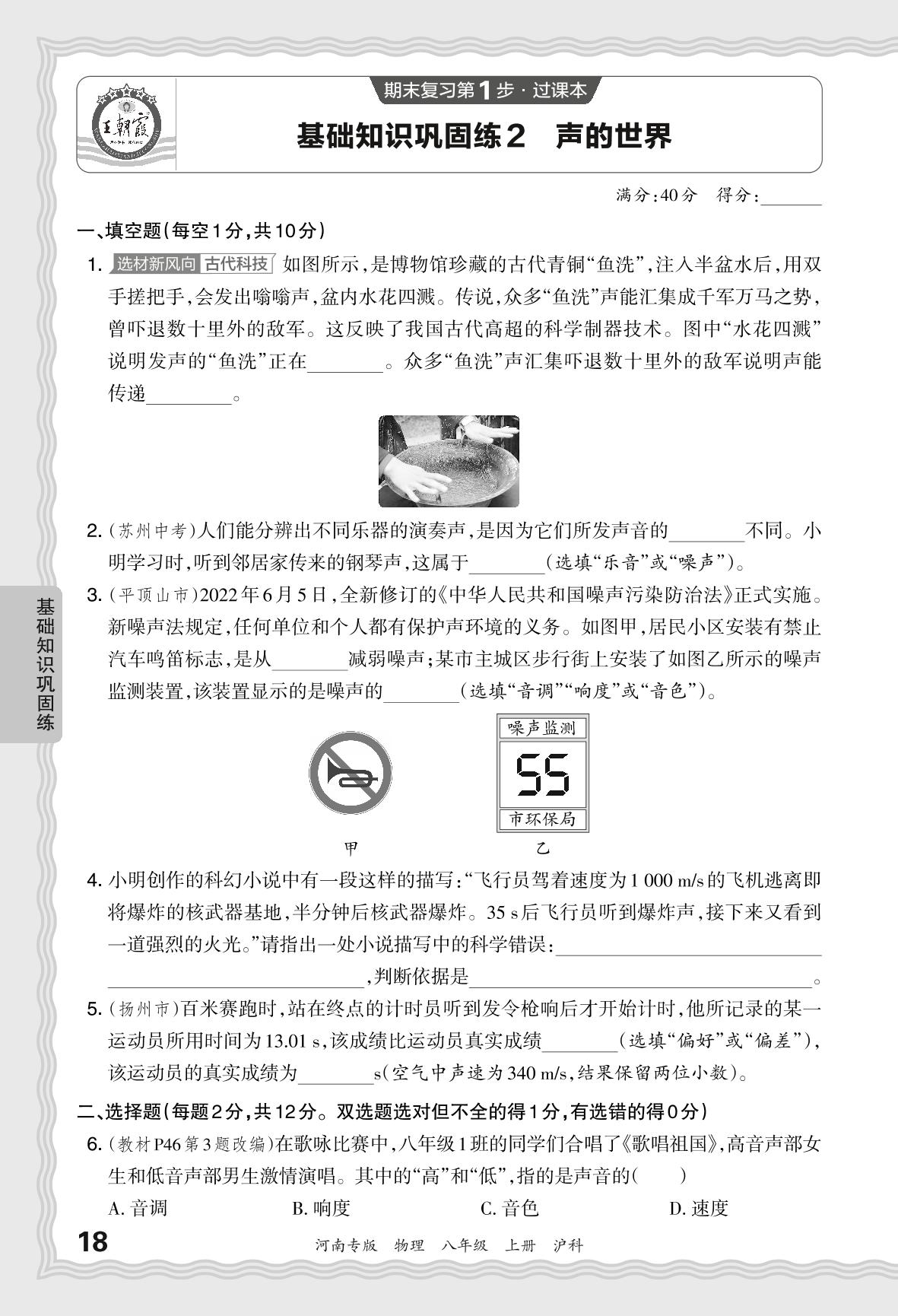 2023秋上册八年级物理沪科版 期末过课本·基础知识巩固练 声的世界_R231124175344004【2】