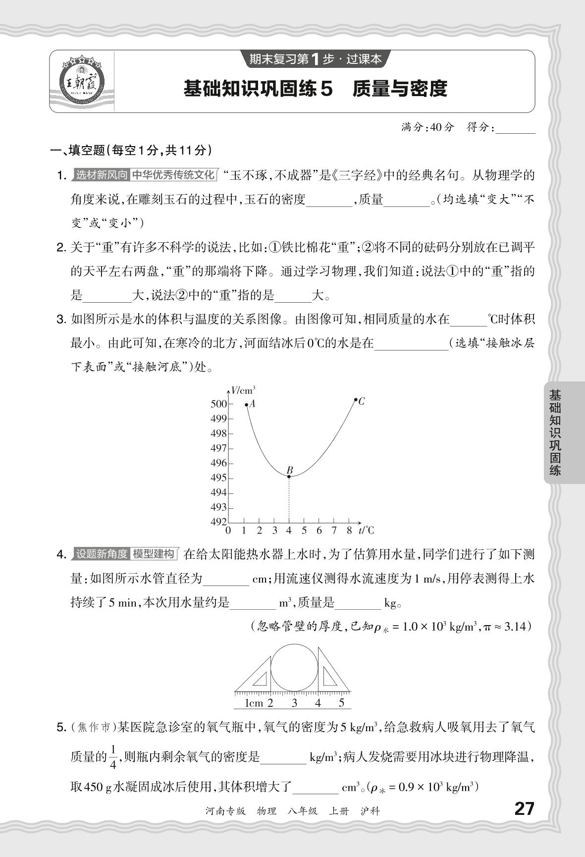 2023秋上册八年级物理沪科版 期末过课本·基础知识巩固练 质量与密度_R231124175345278【5】